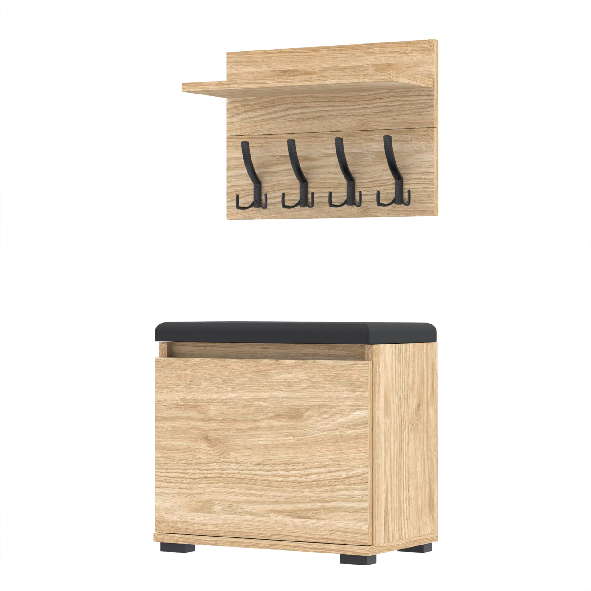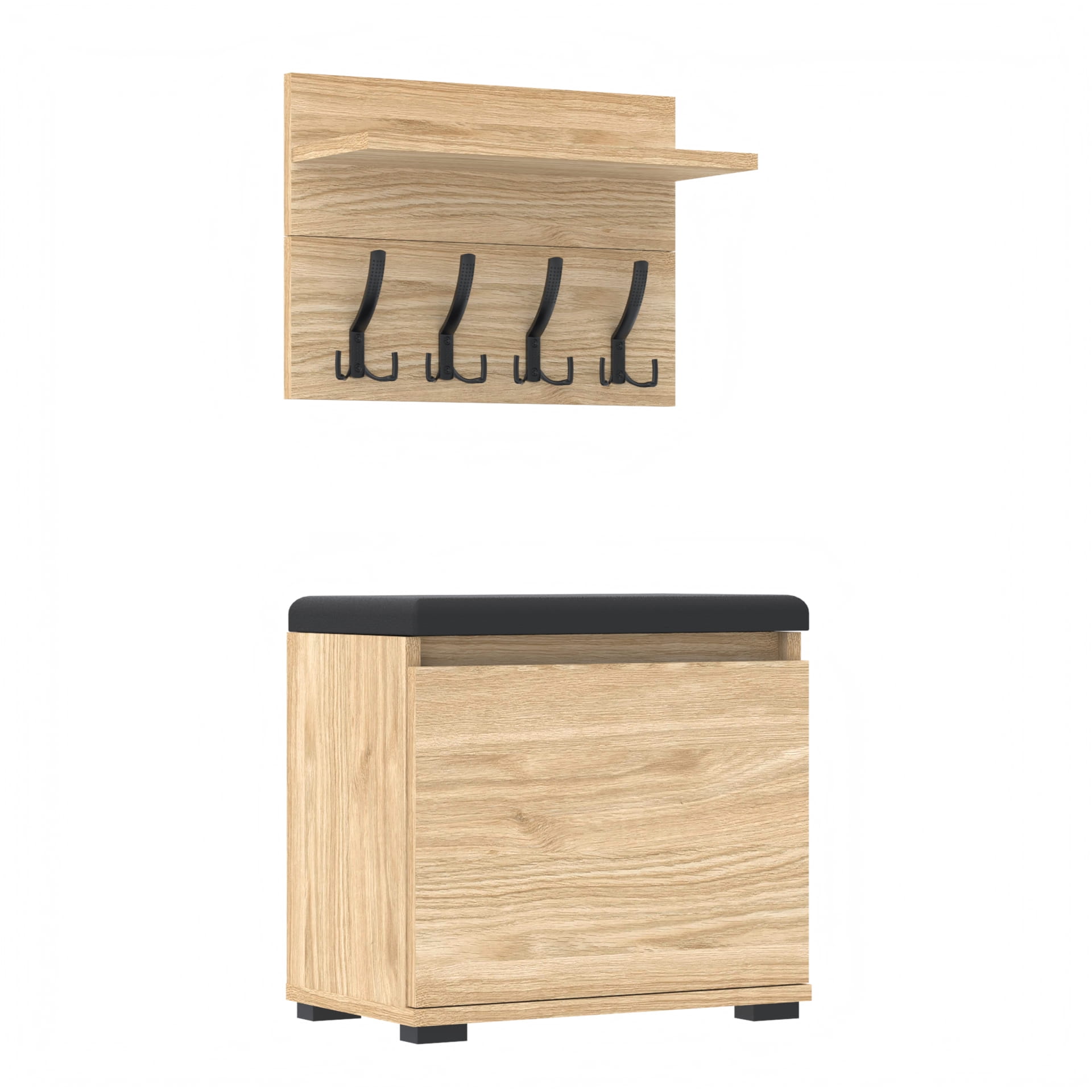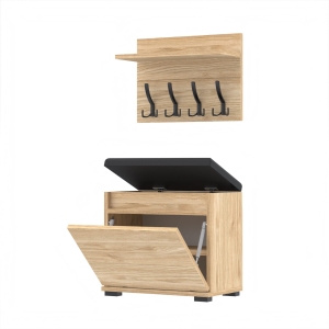 Szafka na buty z siedziskiem tapicerowanym, schowkiem plus wieszak ścienny
