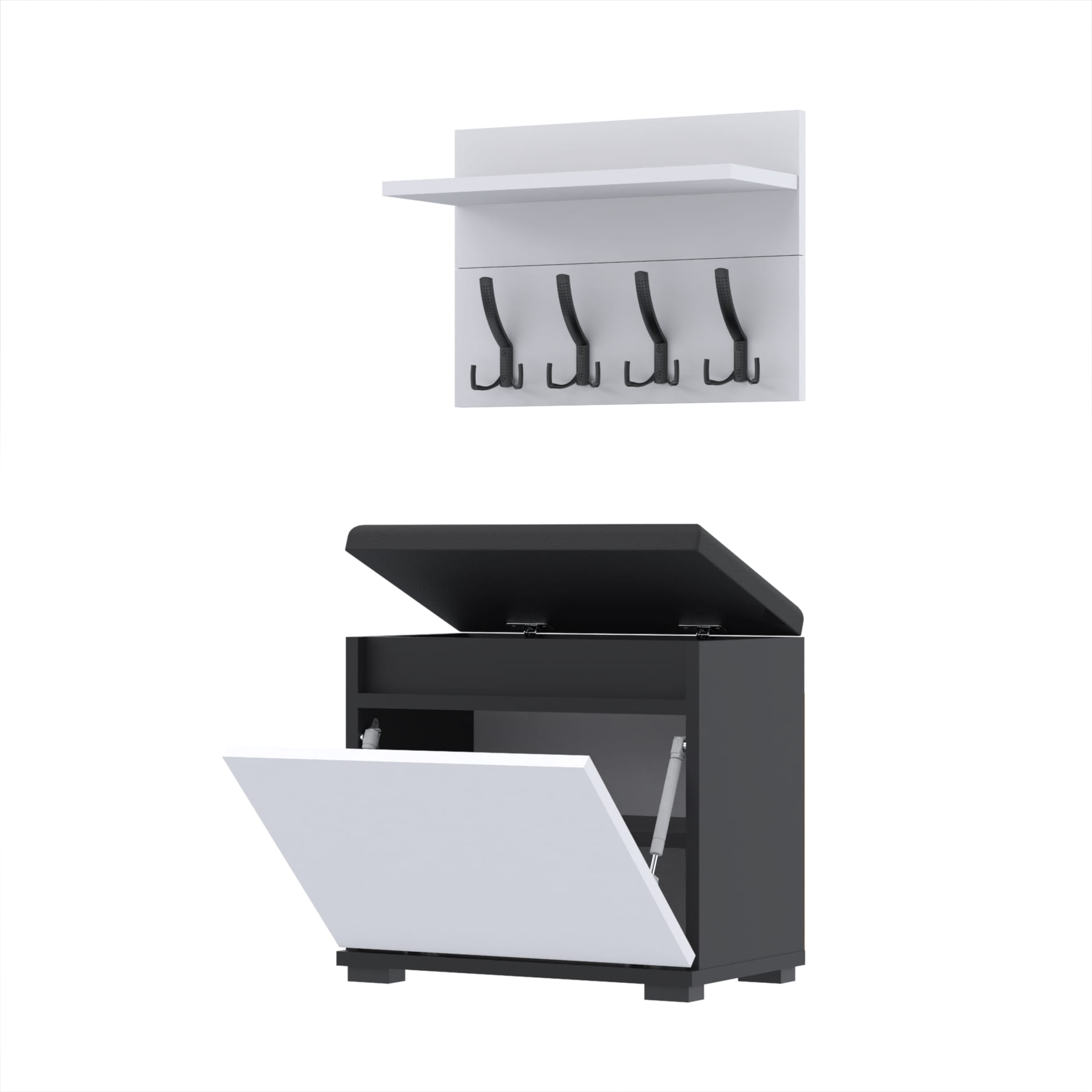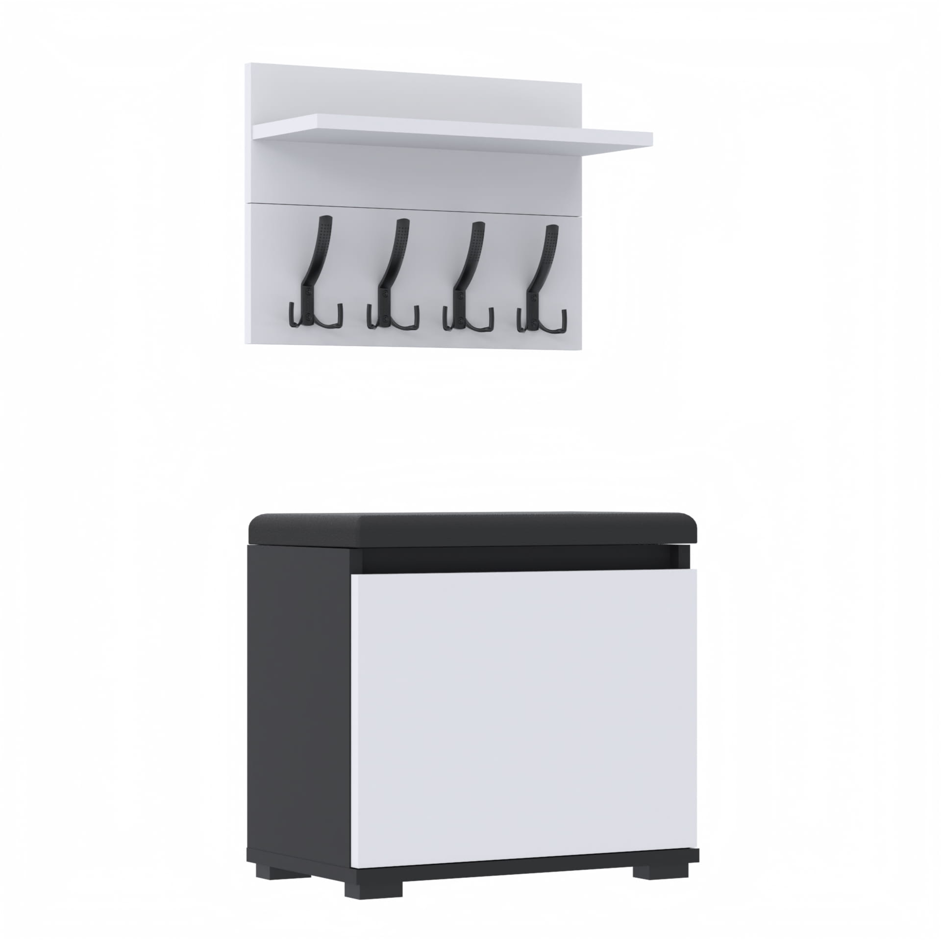 Szafka na buty z siedziskiem tapicerowanym, schowkiem plus wieszak ścienny