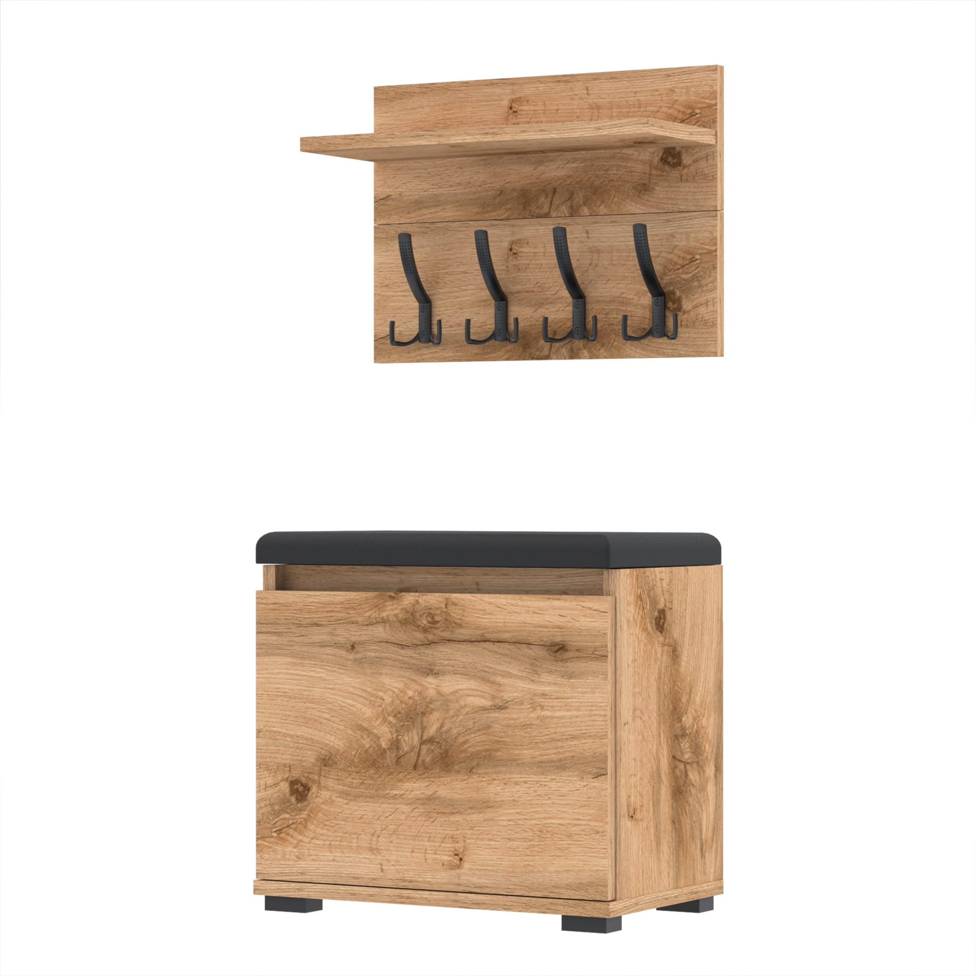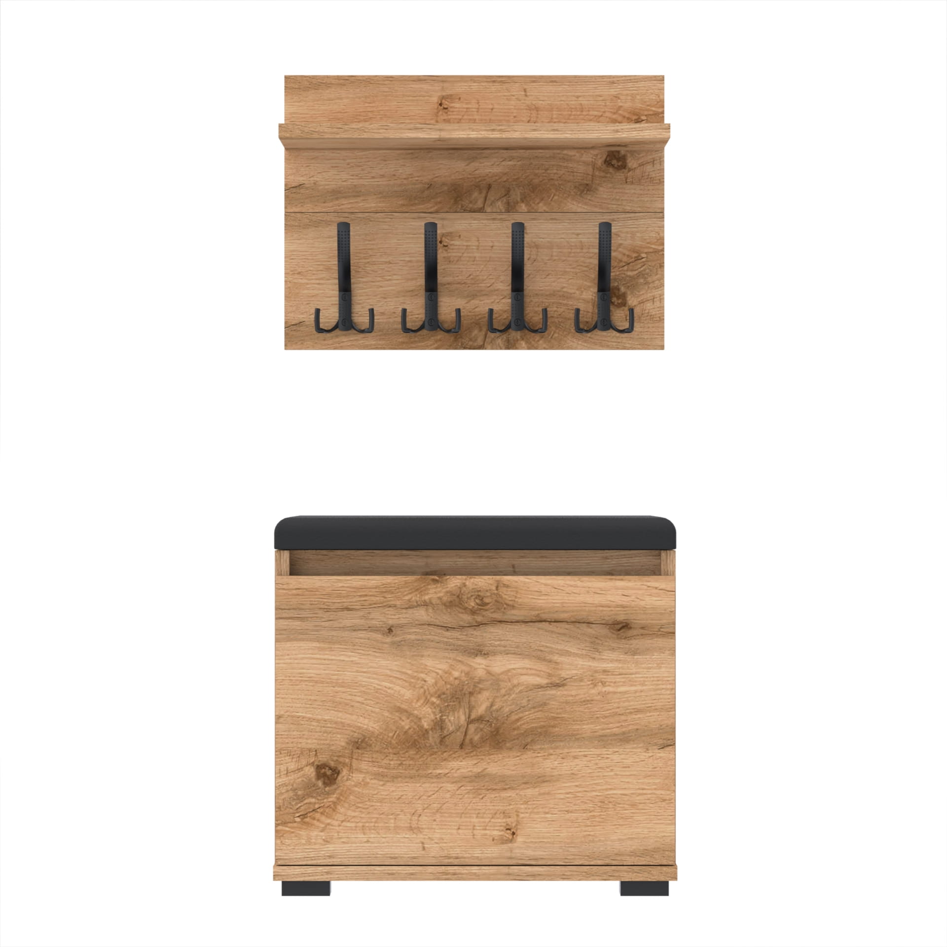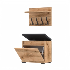Szafka na buty z siedziskiem tapicerowanym, schowkiem plus wieszak ścienny