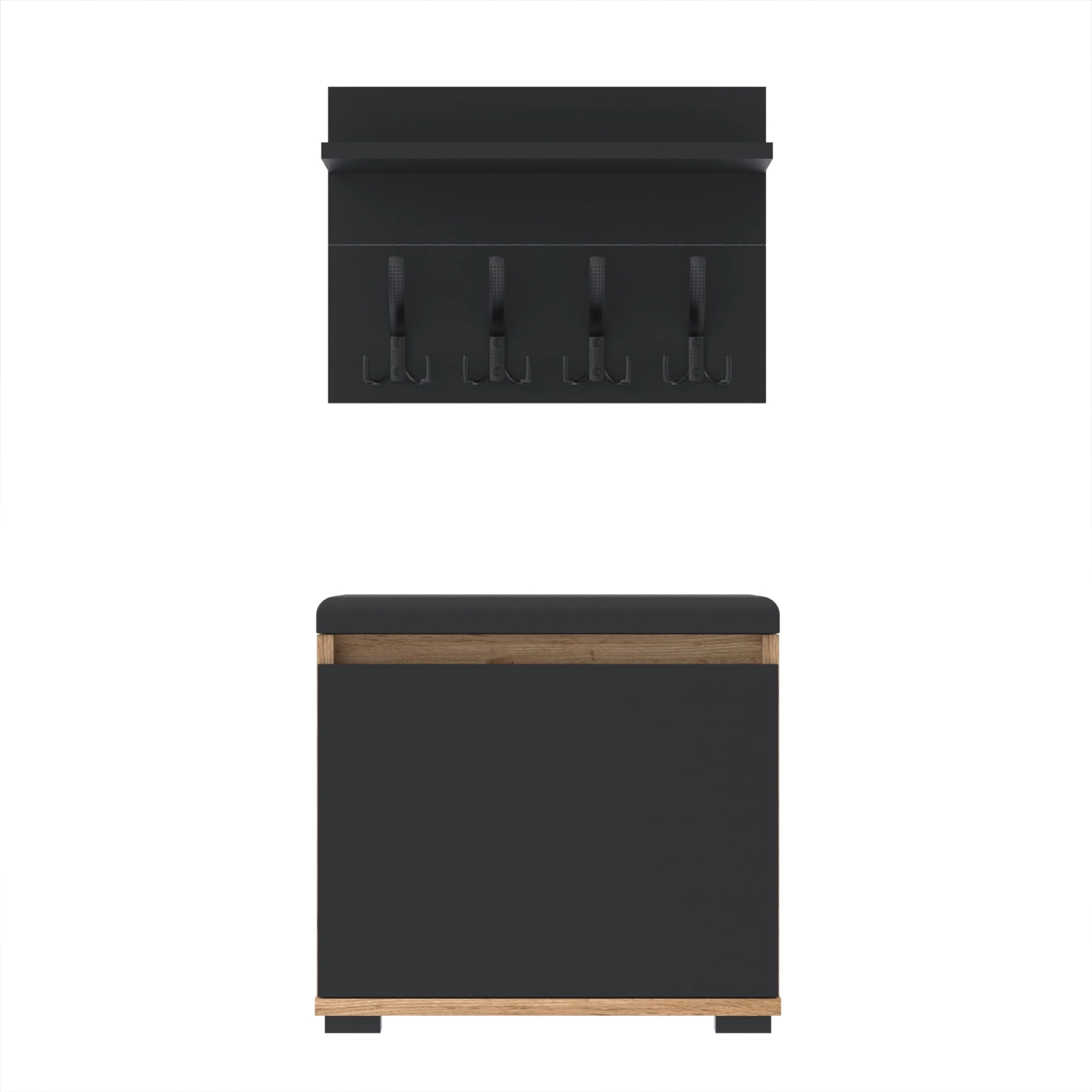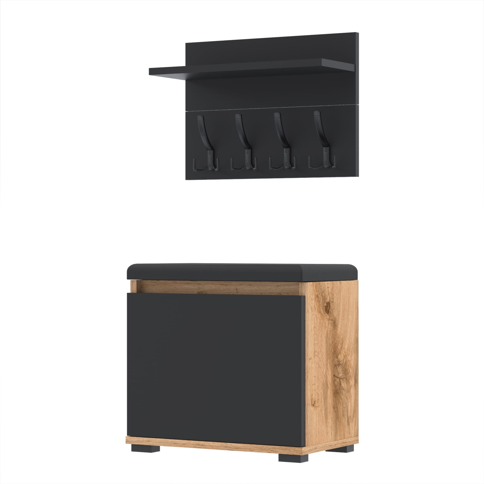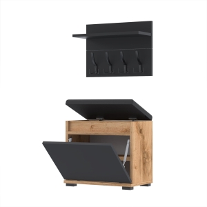 Szafka na buty z siedziskiem tapicerowanym, schowkiem plus wieszak ścienny