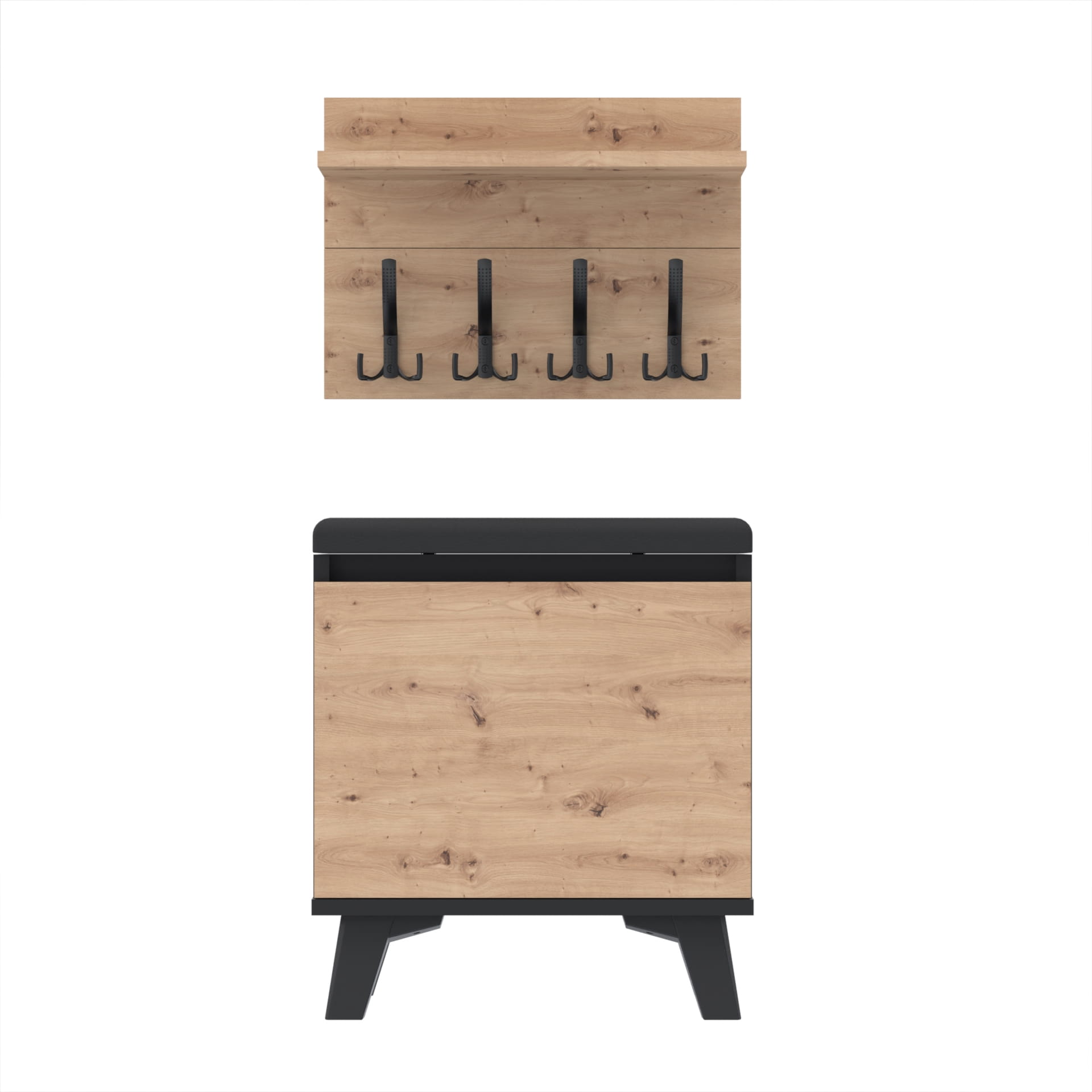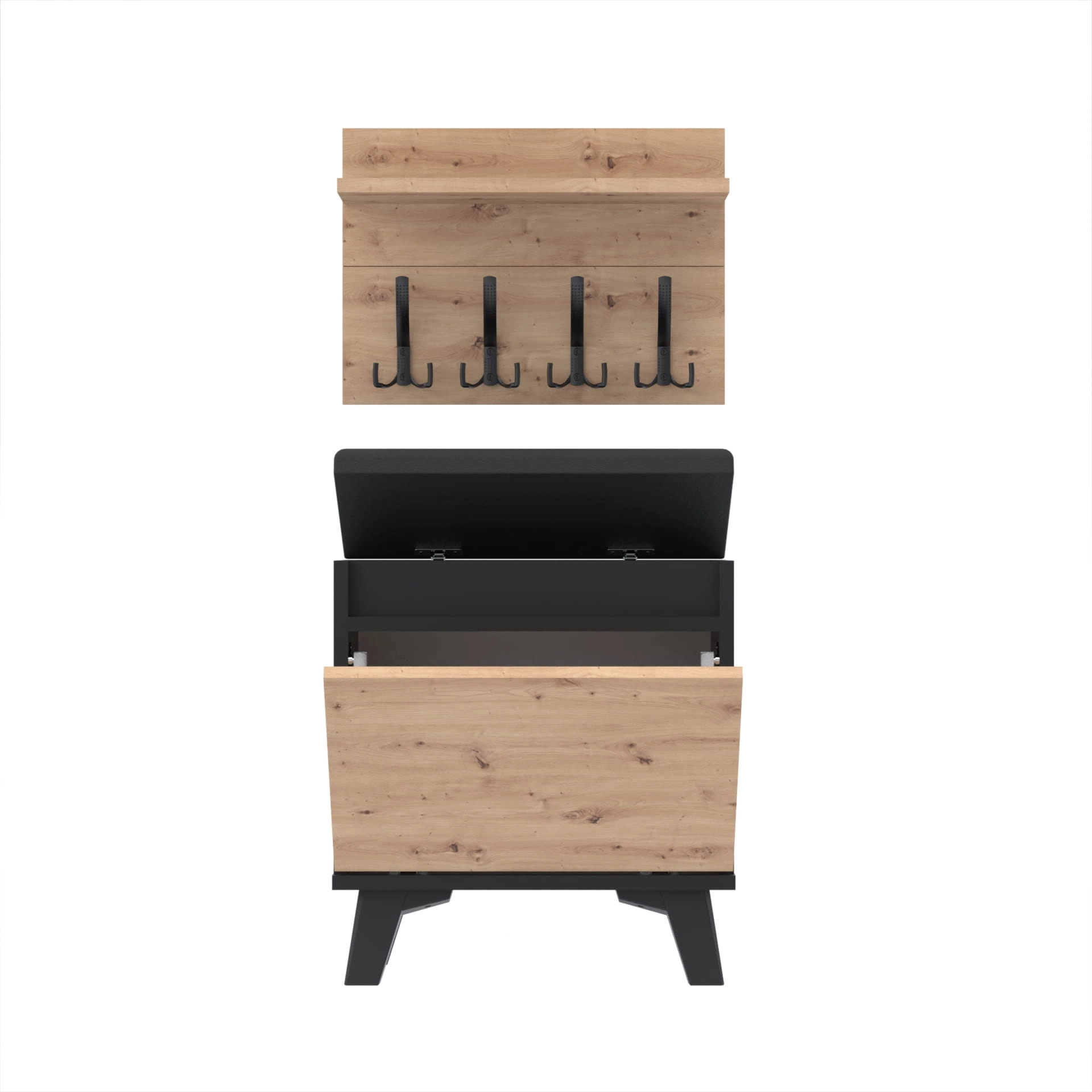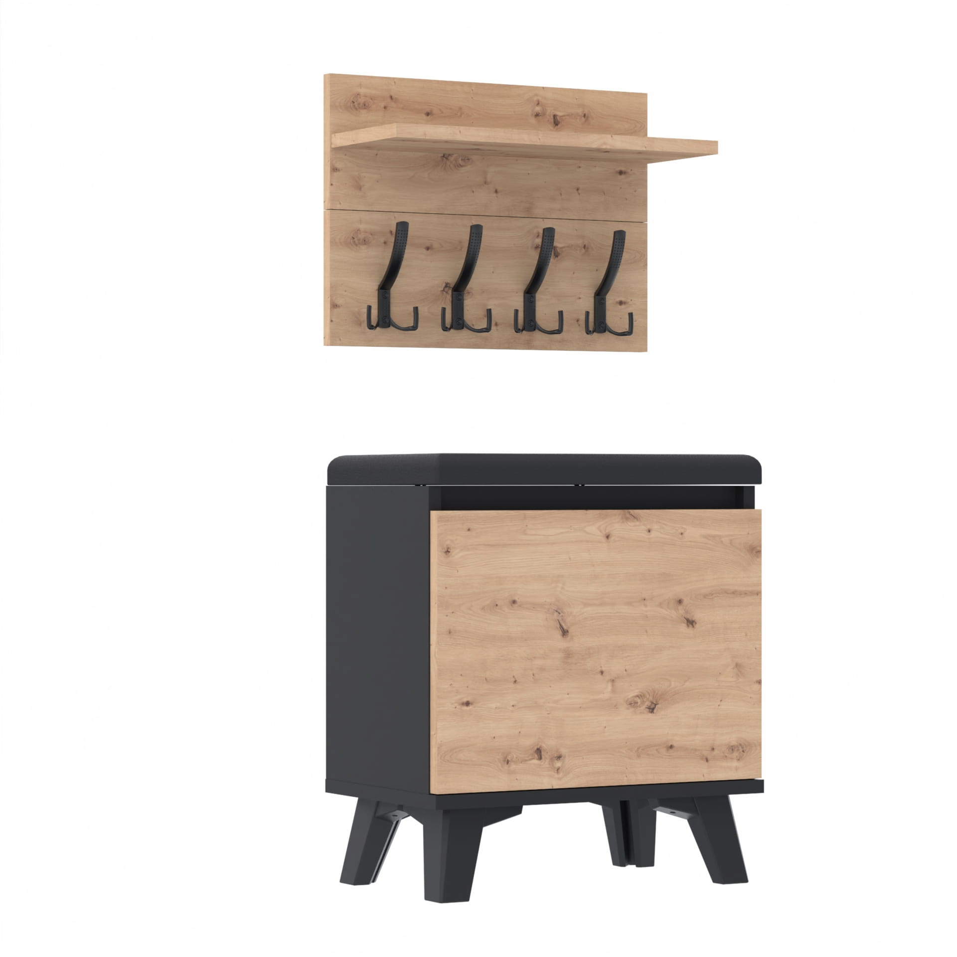Szafka na buty z siedziskiem tapicerowanym, schowkiem plus wieszak ścienny