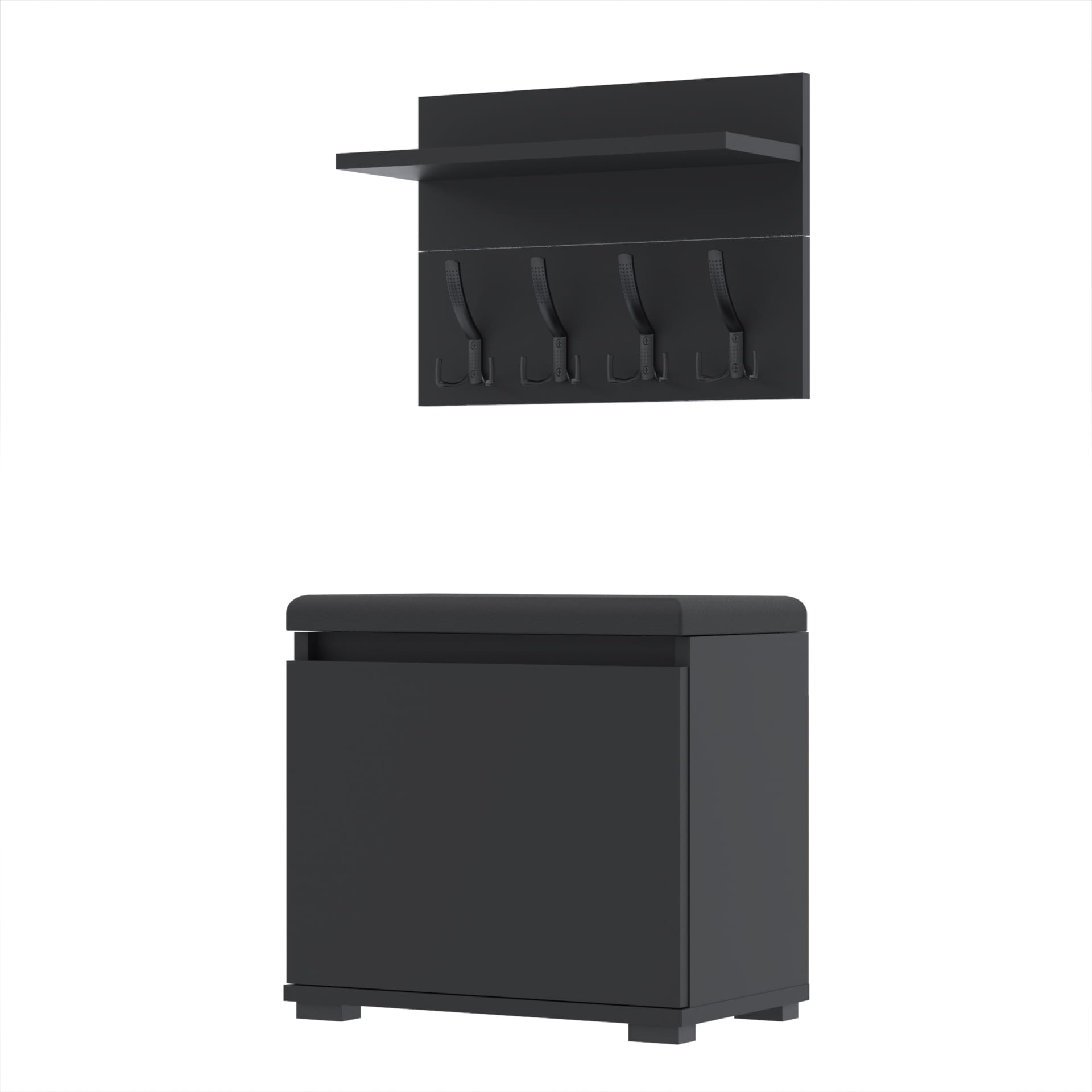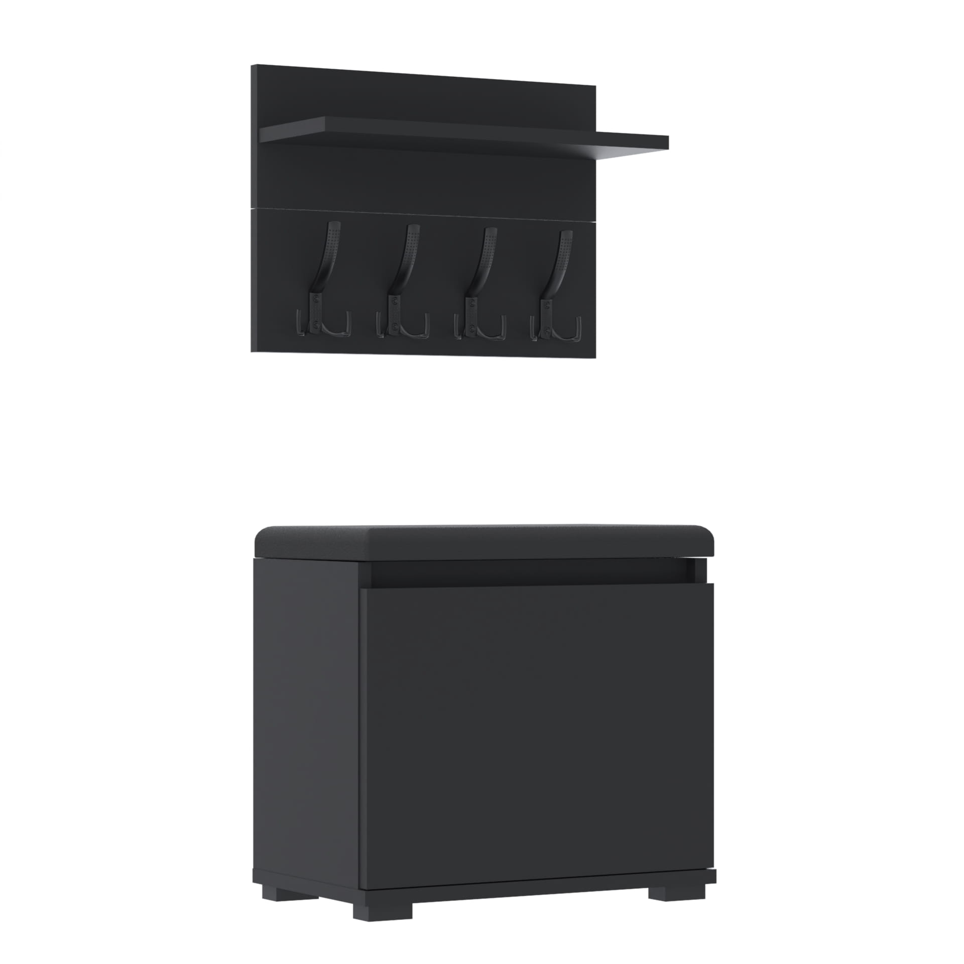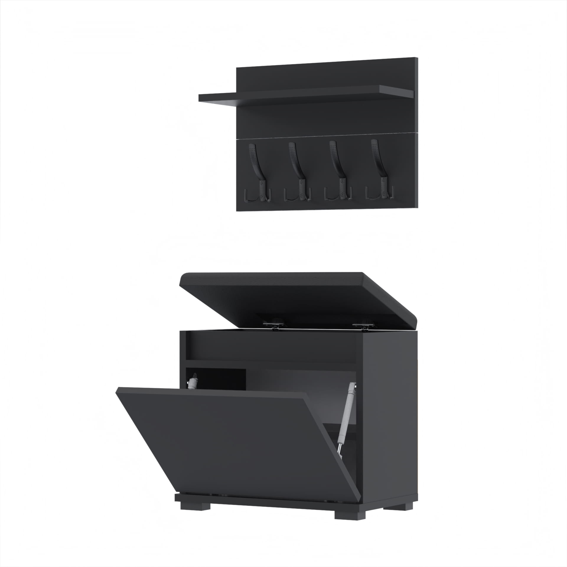 Szafka na buty z siedziskiem tapicerowanym, schowkiem plus wieszak ścienny