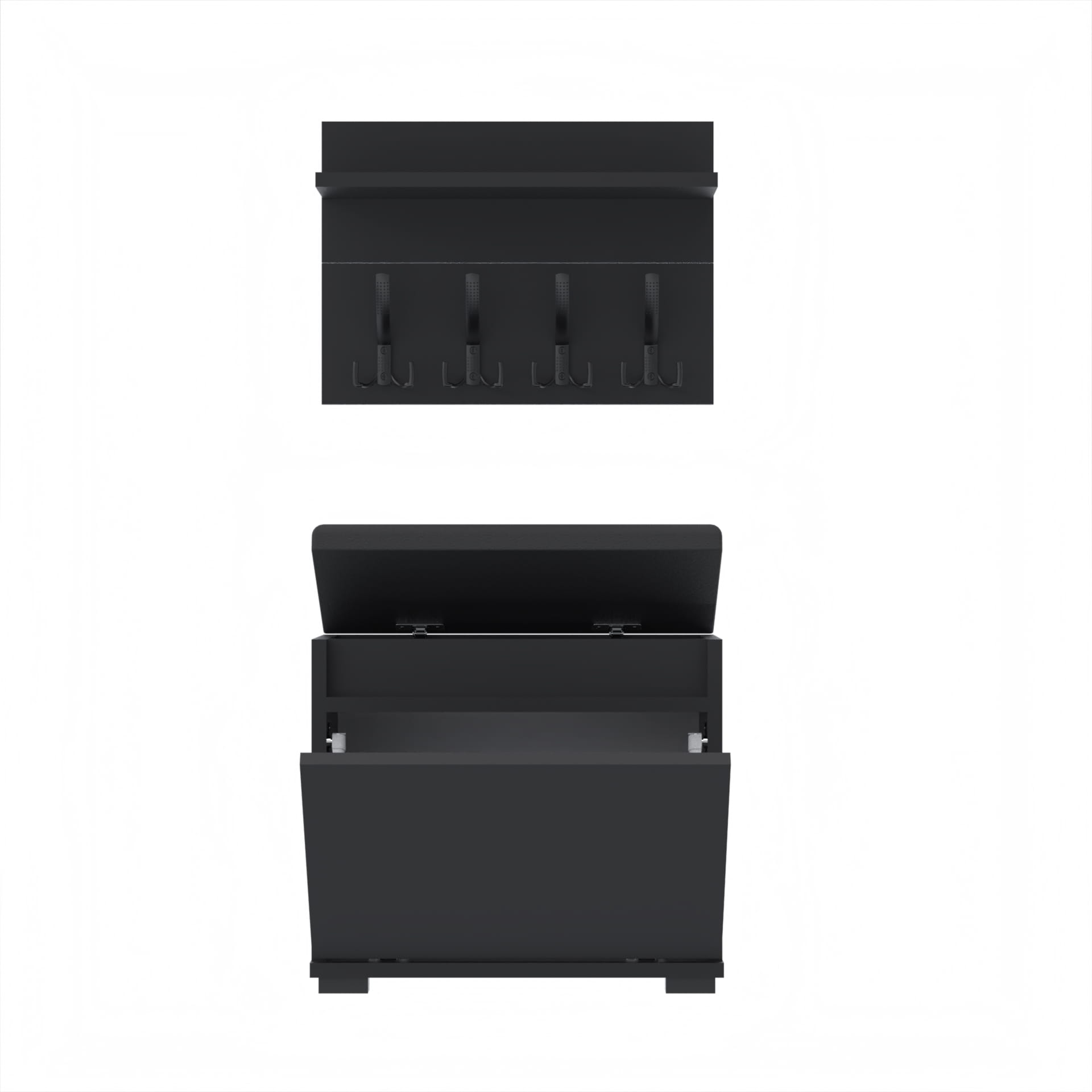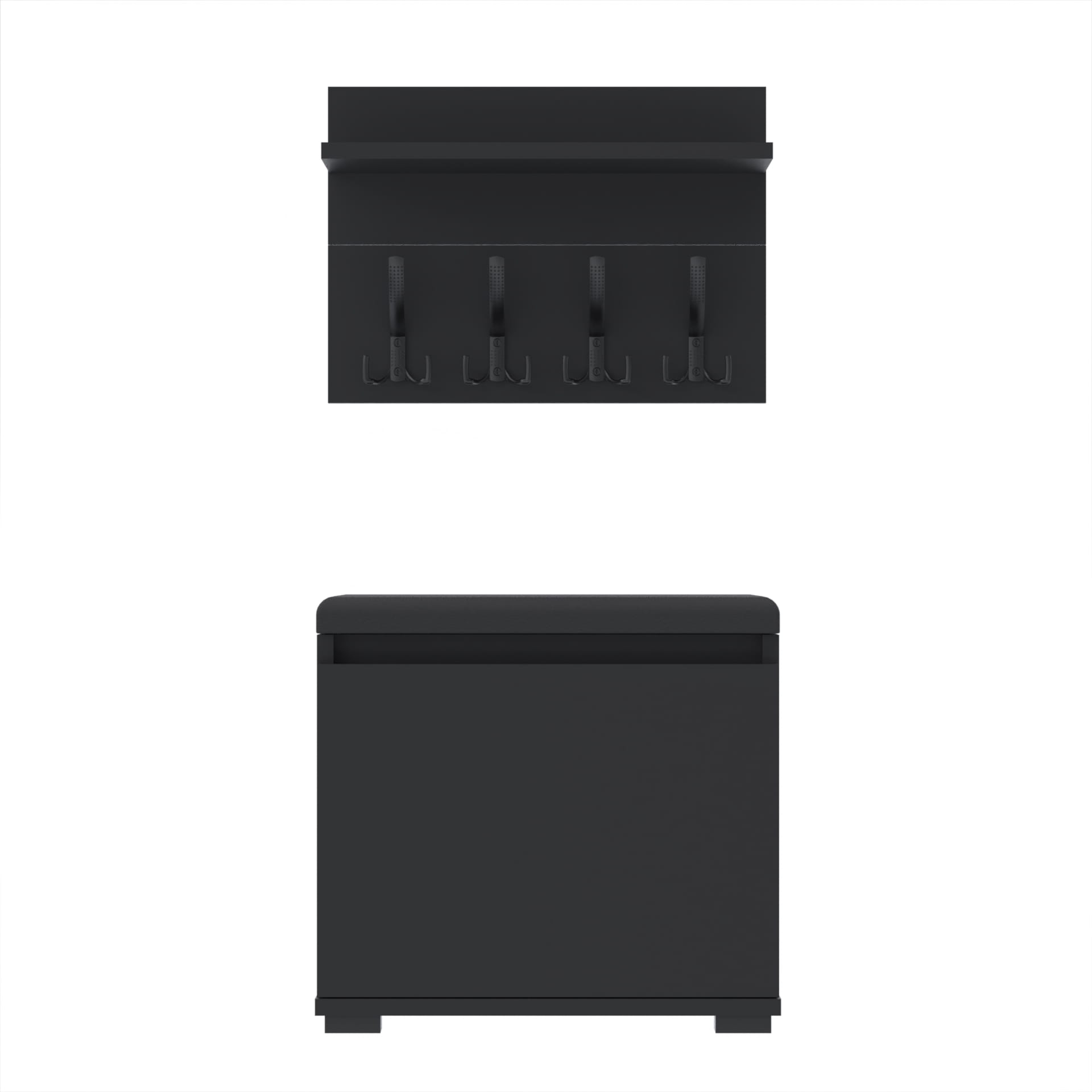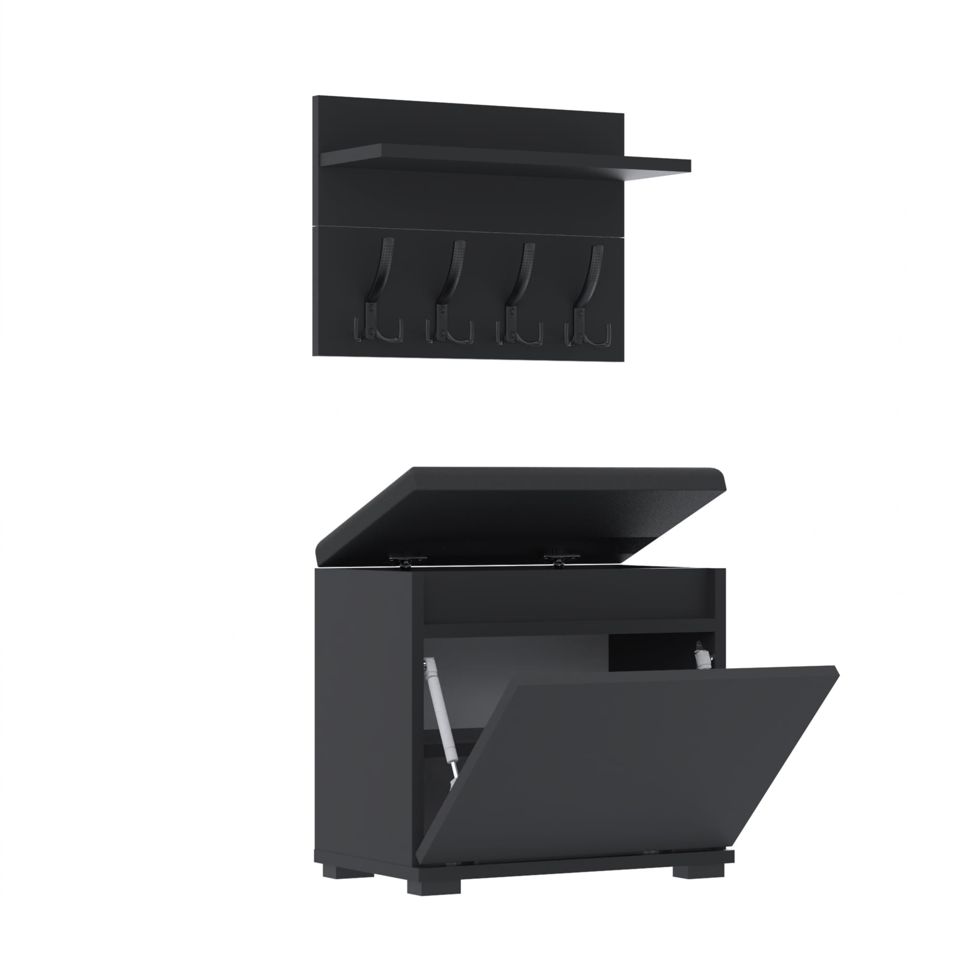 Szafka na buty z siedziskiem tapicerowanym, schowkiem plus wieszak ścienny