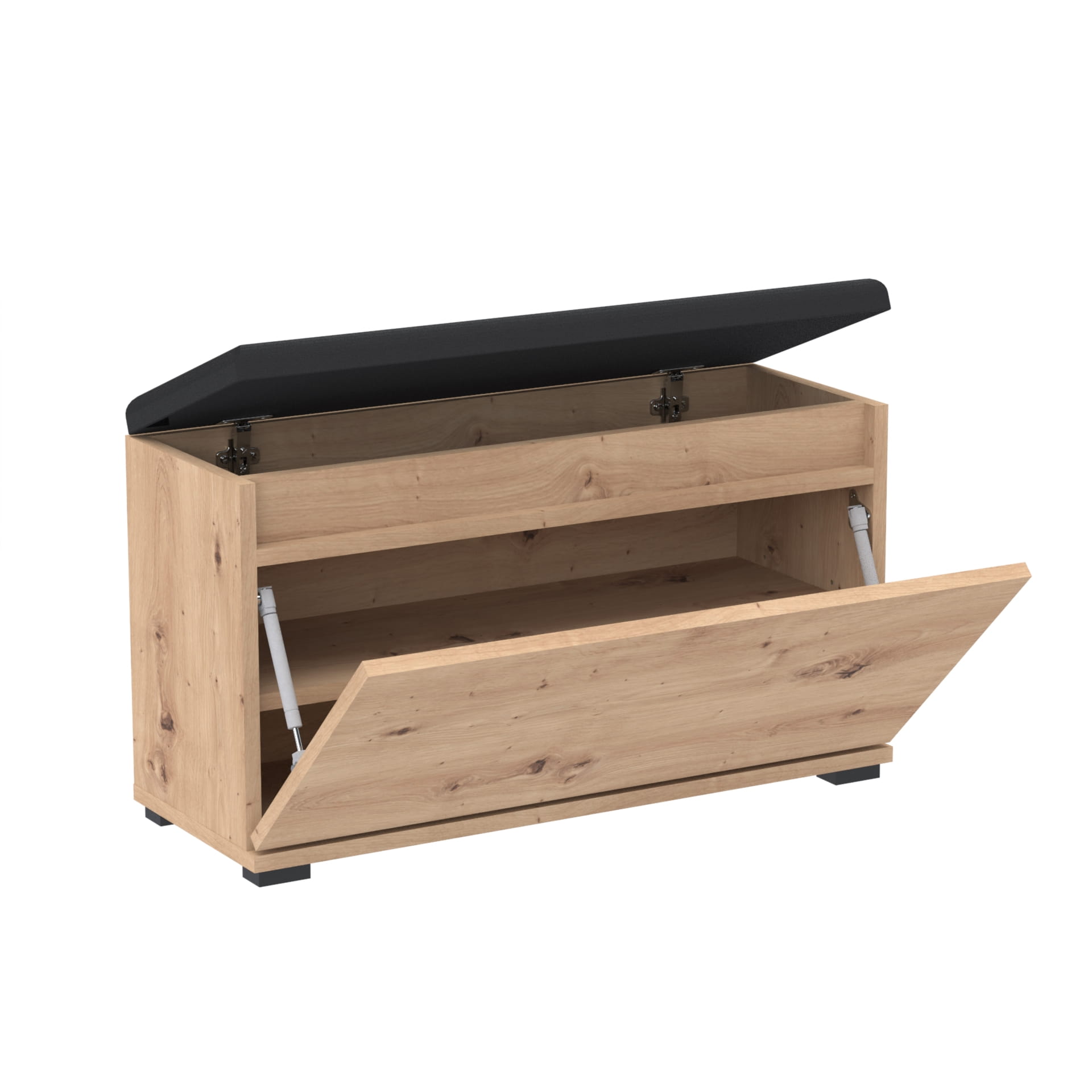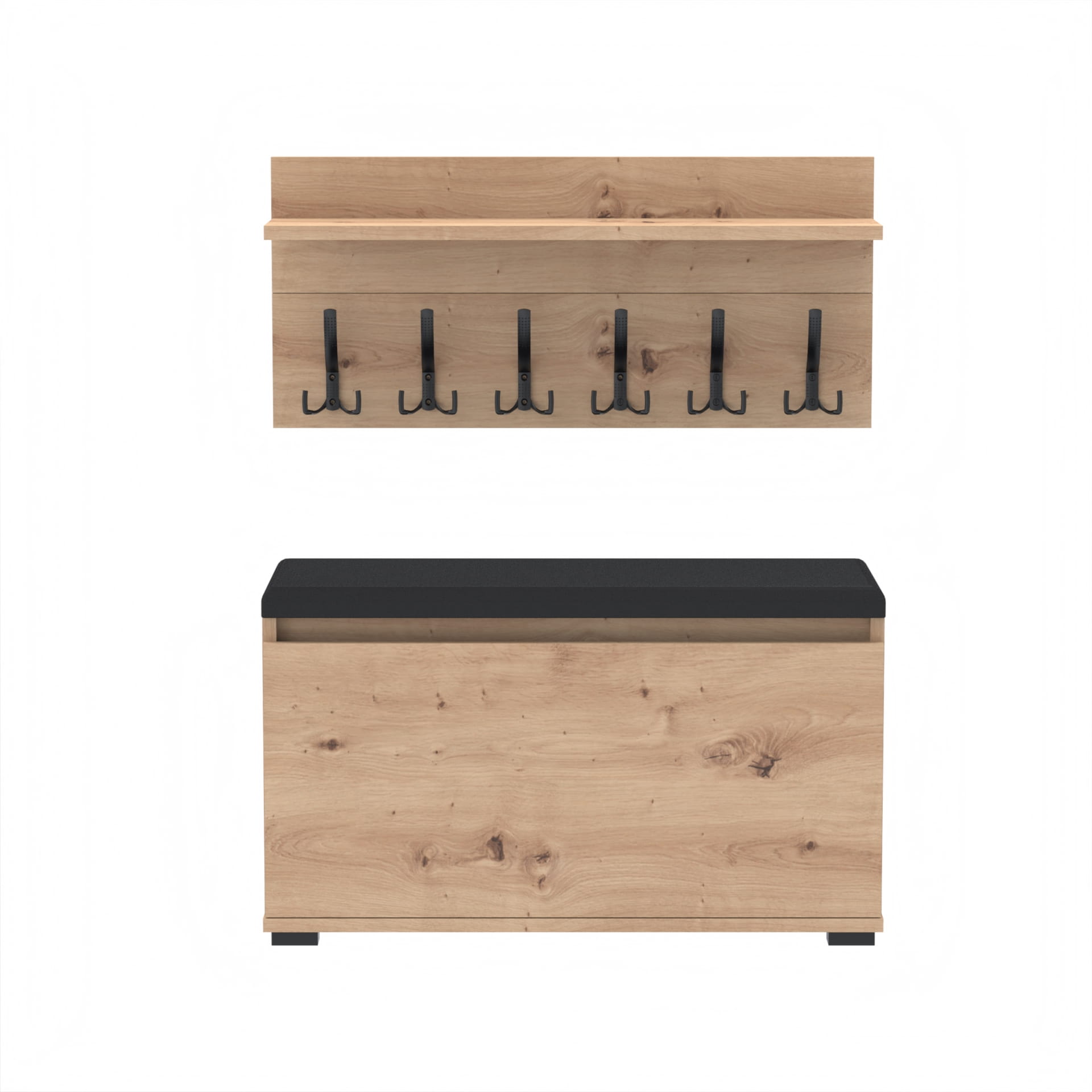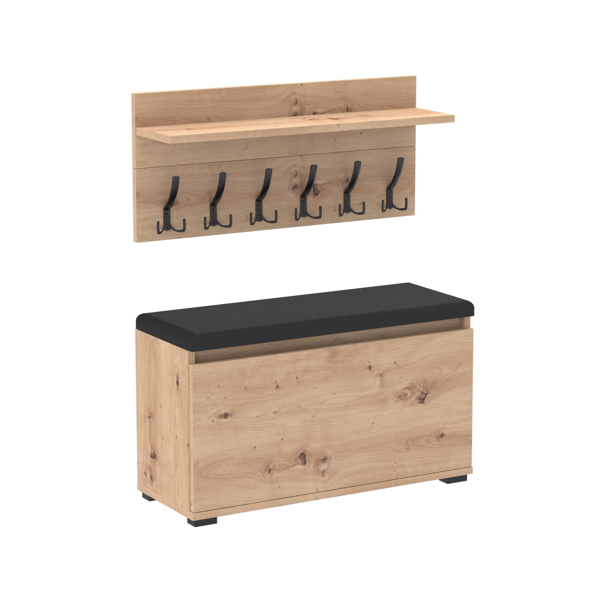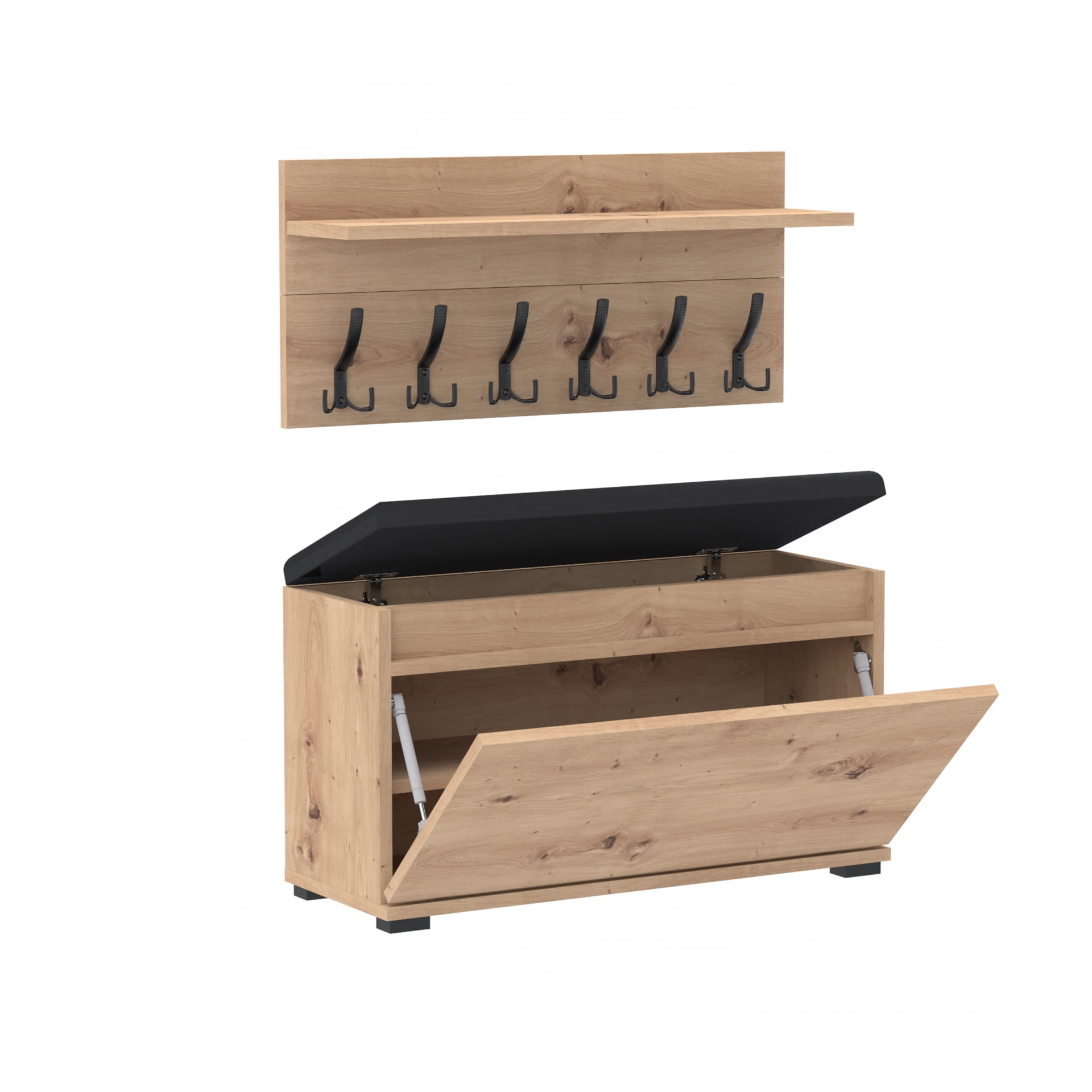 Szafka na buty z siedziskiem tapicerowanym, schowkiem plus wieszak ścienny
