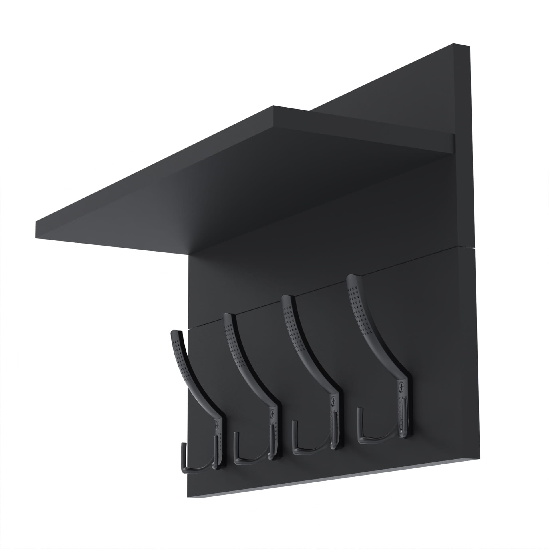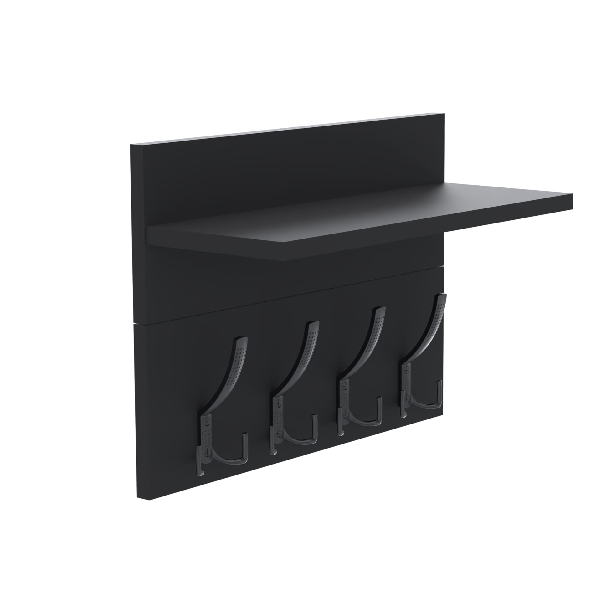 Konstrukcja: Wieszak składa się z dwóch harmonijnie połączonych części: wieszak i półka. Zarówno płyta tylna wieszaka, jak i półka, mają po 18 cm wysokości, co nadaje całości spójnego i nowoczesnego wyglądu.