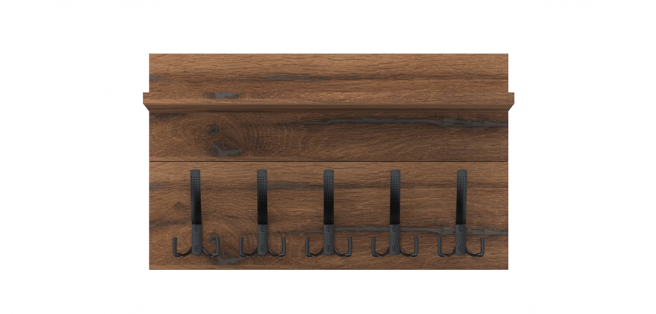 Konstrukcja: Wieszak składa się z dwóch harmonijnie połączonych części: wieszak i półka. Zarówno płyta tylna wieszaka, jak i półka, mają po 18 cm wysokości, co nadaje całości spójnego i nowoczesnego wyglądu.