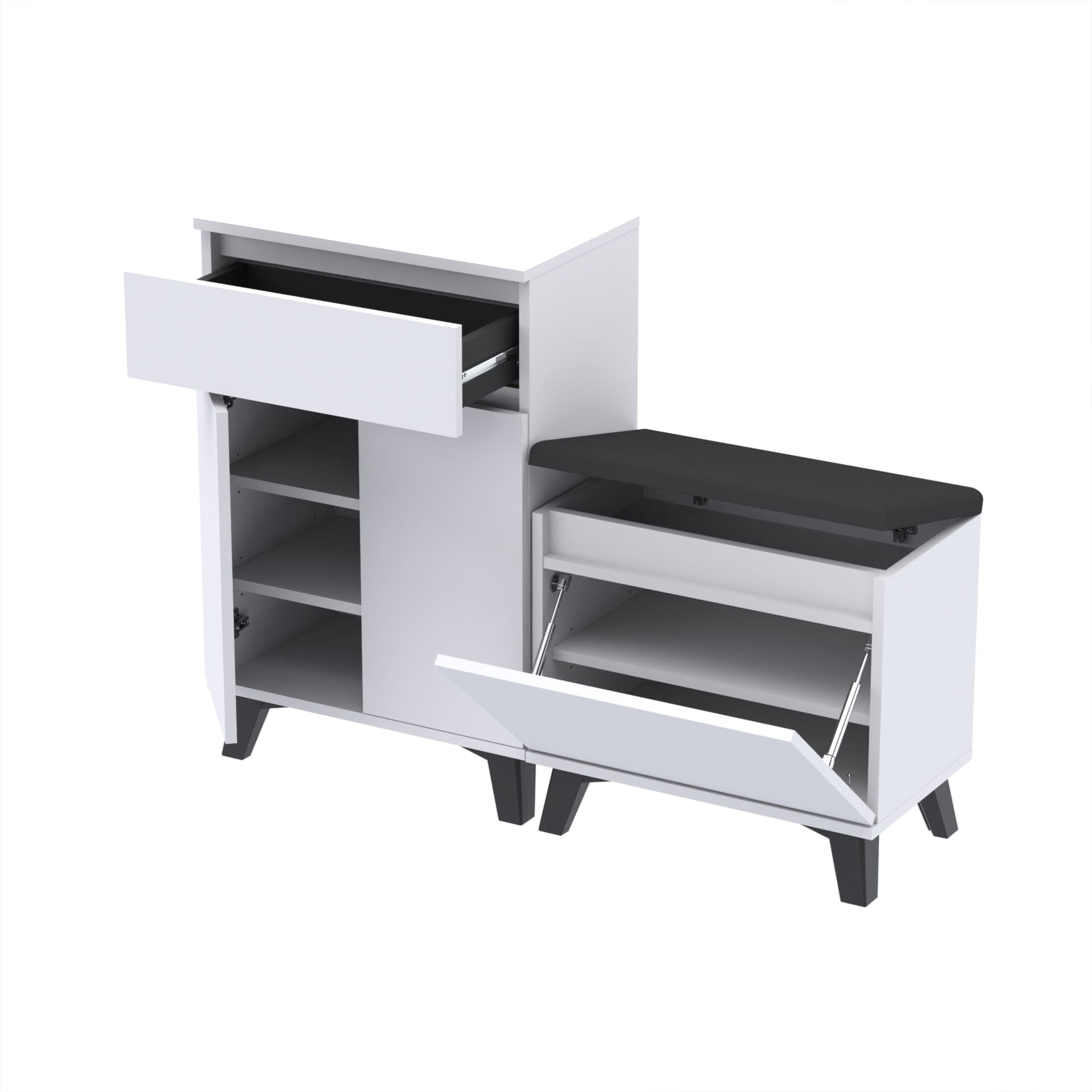 Zestaw - szafka na buty z siedziskiem tapicerowanym i schowkiem, szafka z szufladą Tres