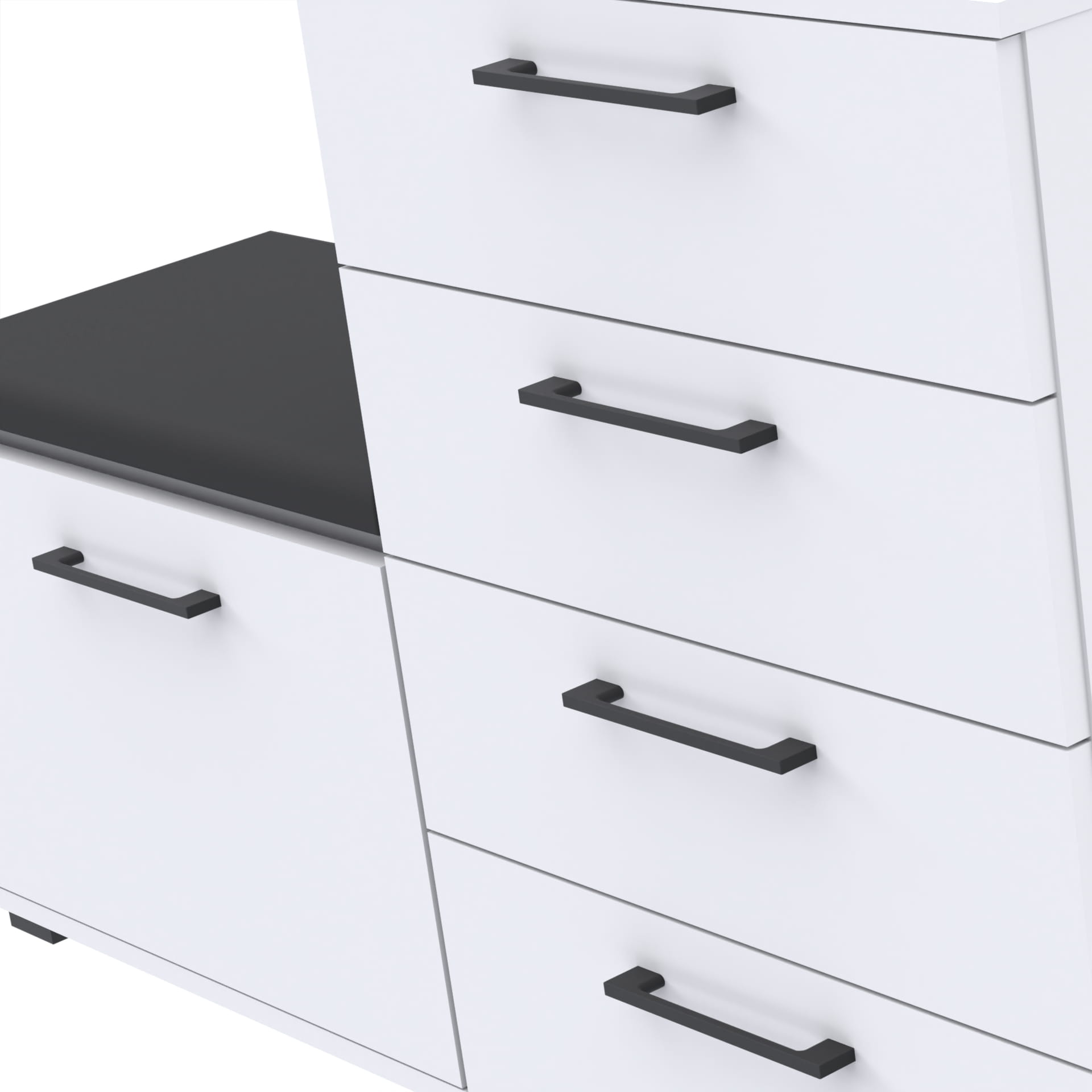 Wykonane z grubej 18 mm płyty meblowej laminowanej. Brzegi pokryte twardym odpornym na uszkodzenia obrzeżem ABS o grubości 0,5 mm.