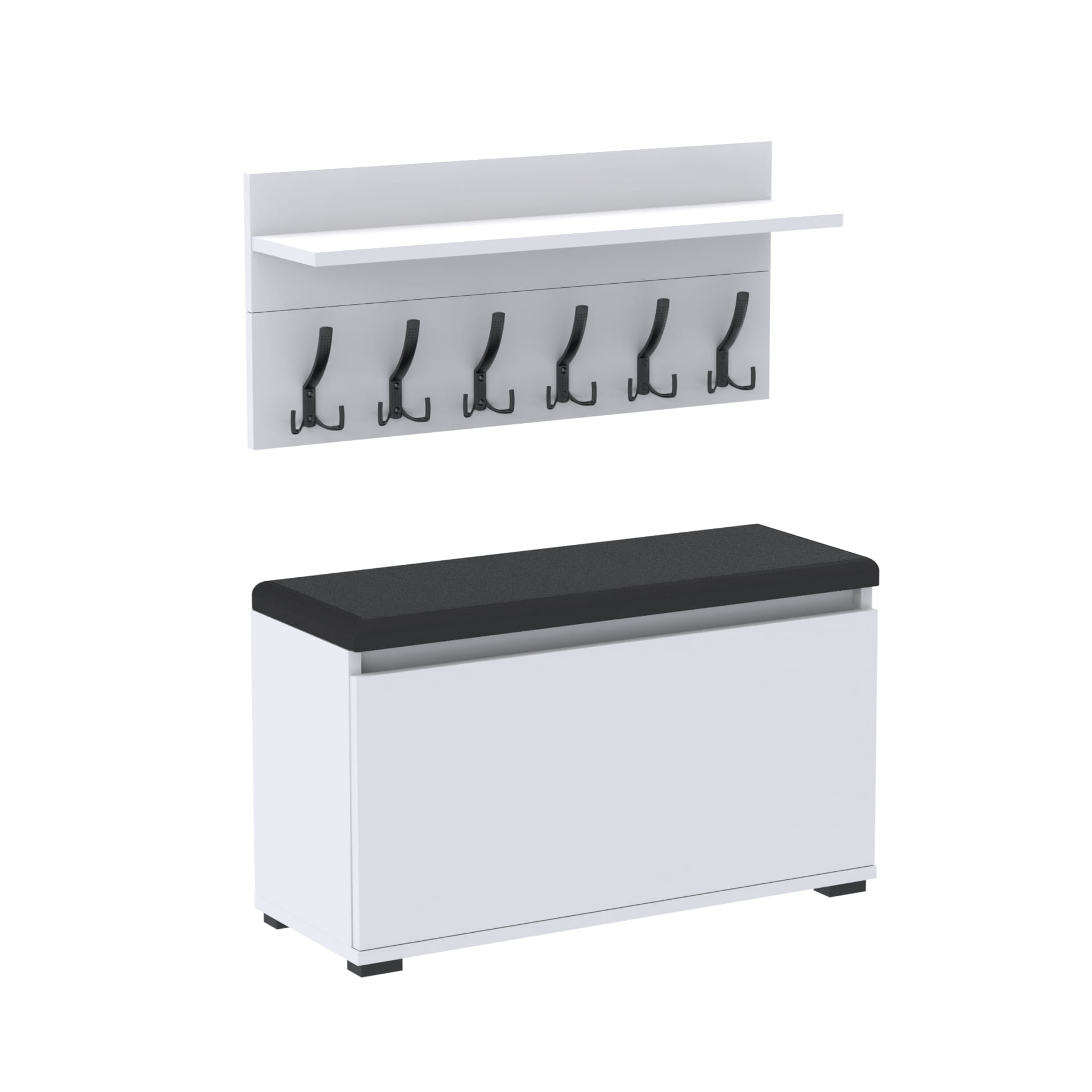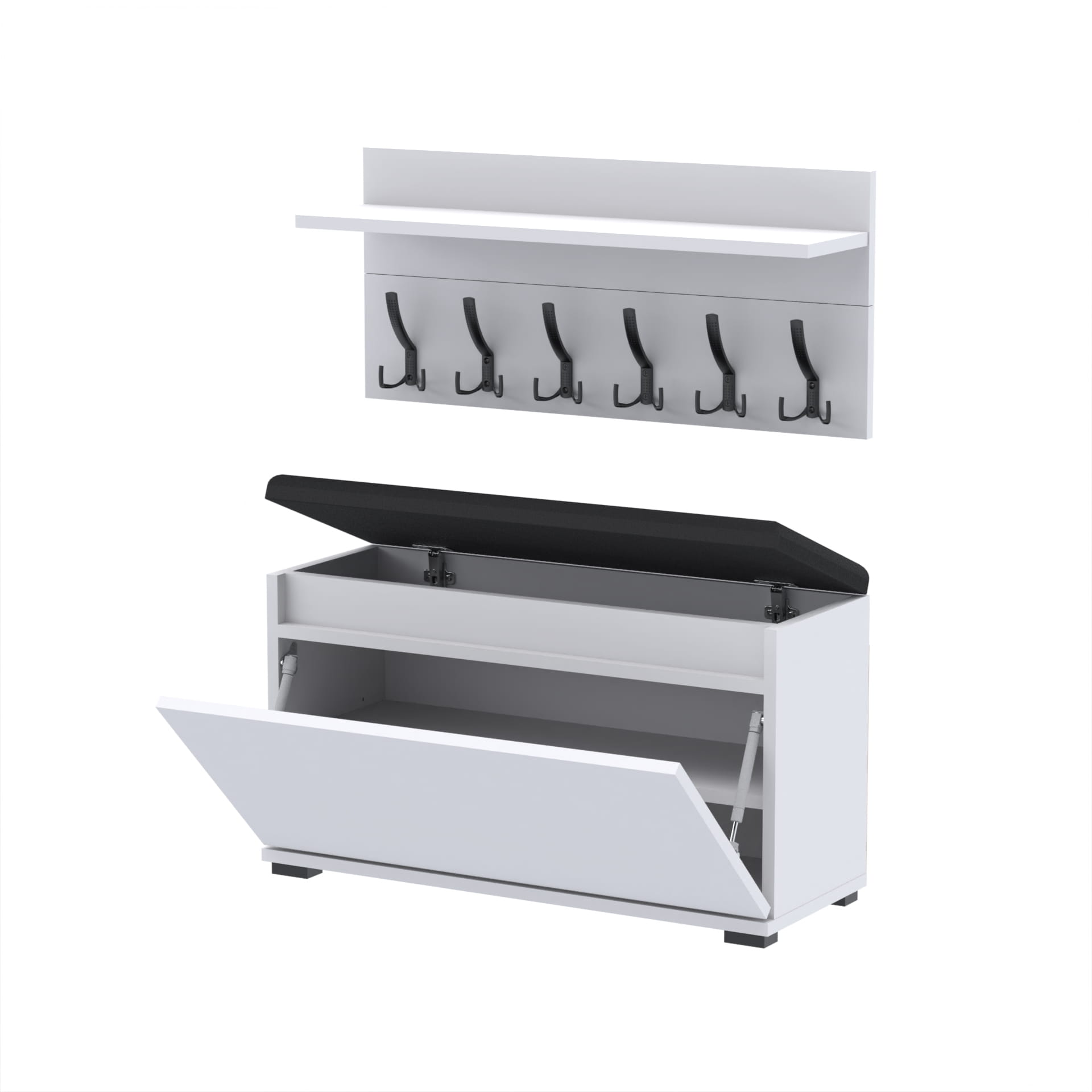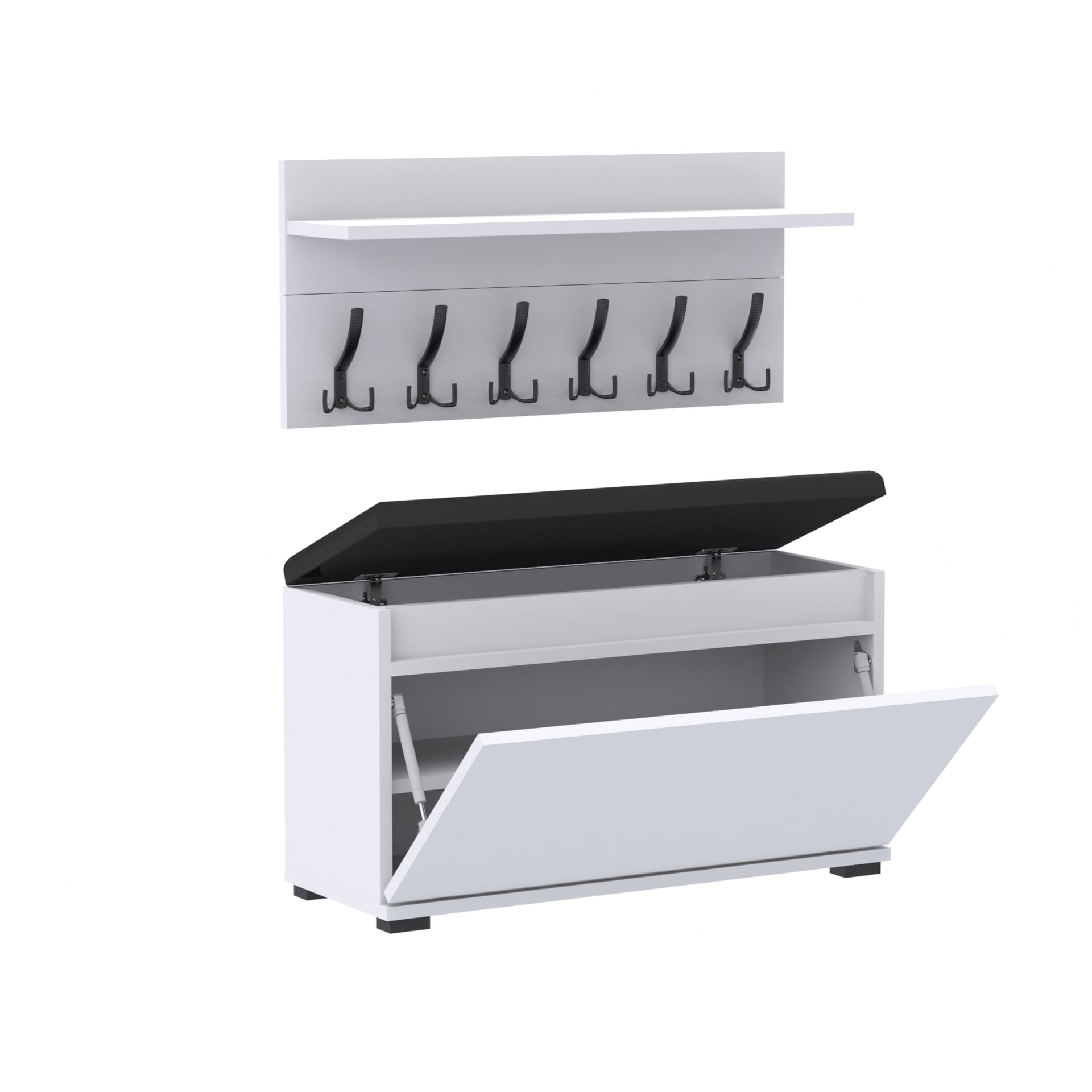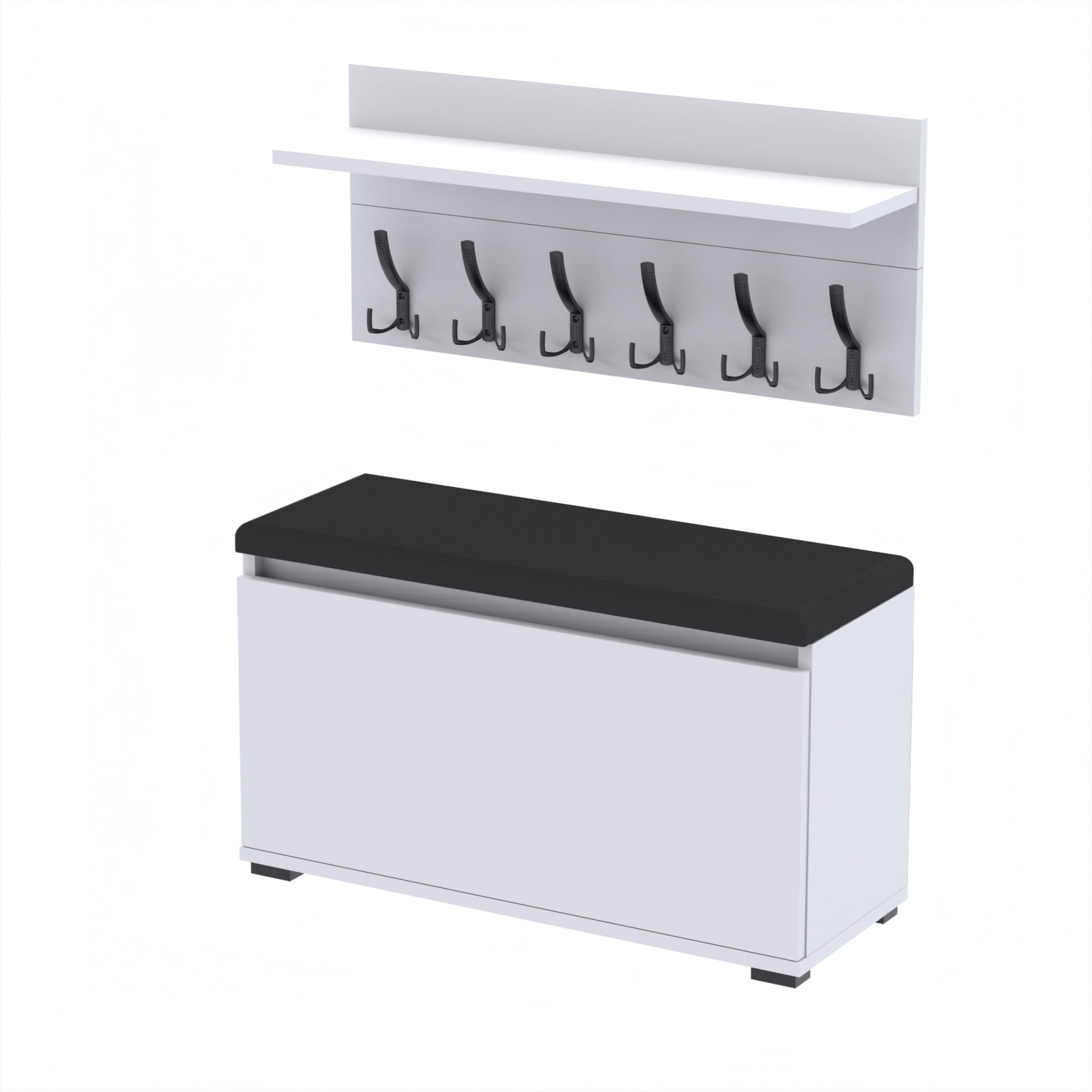 Zestaw - szafka na buty ze schowkiem, wieszak ścienny, półka