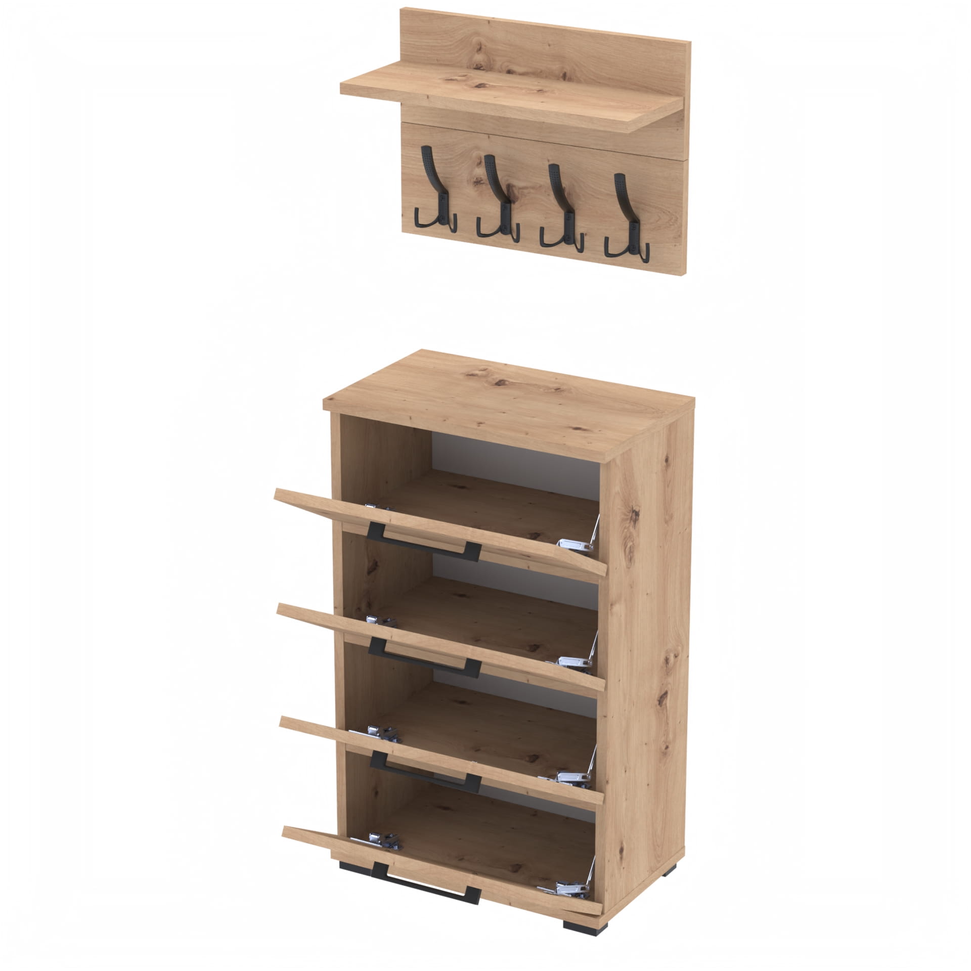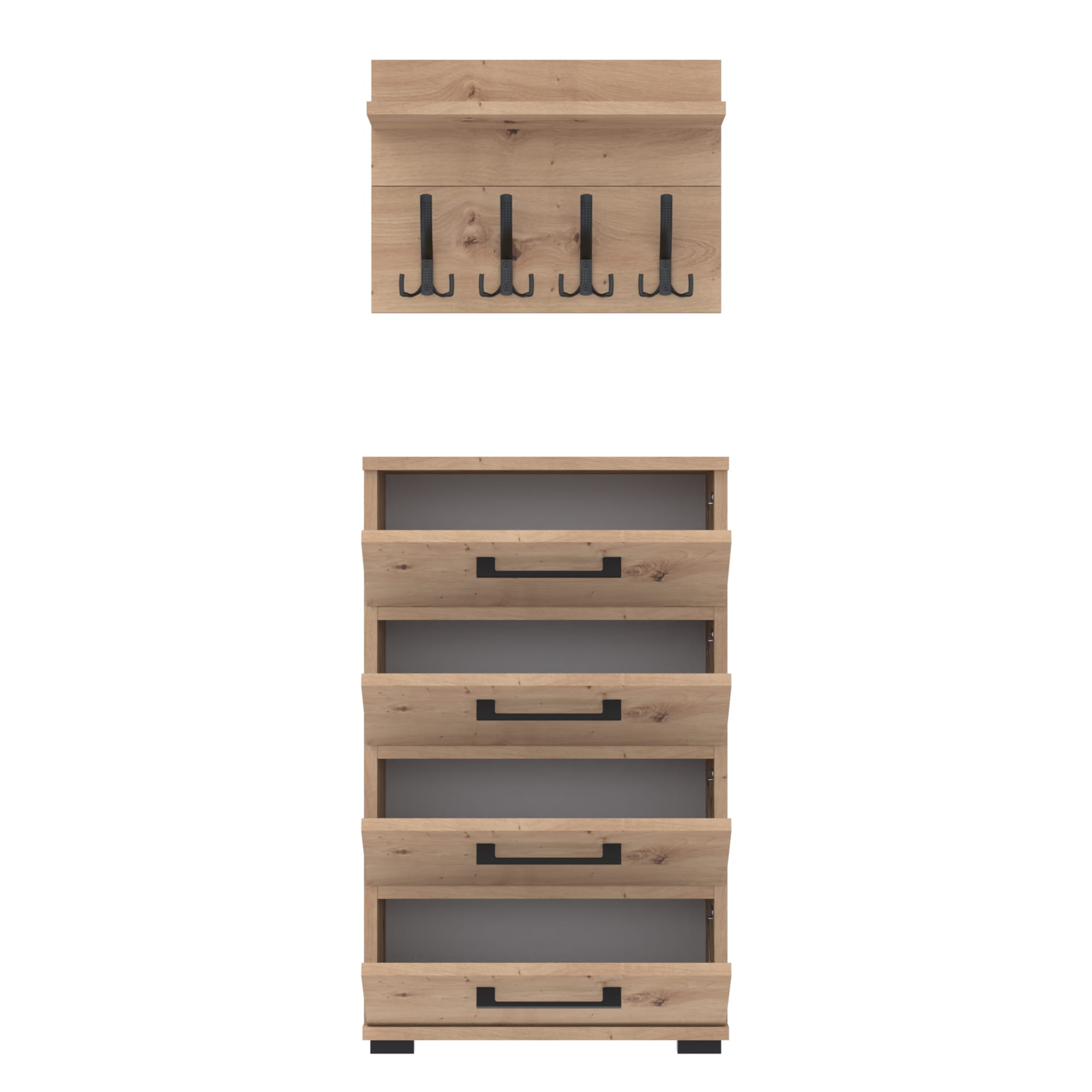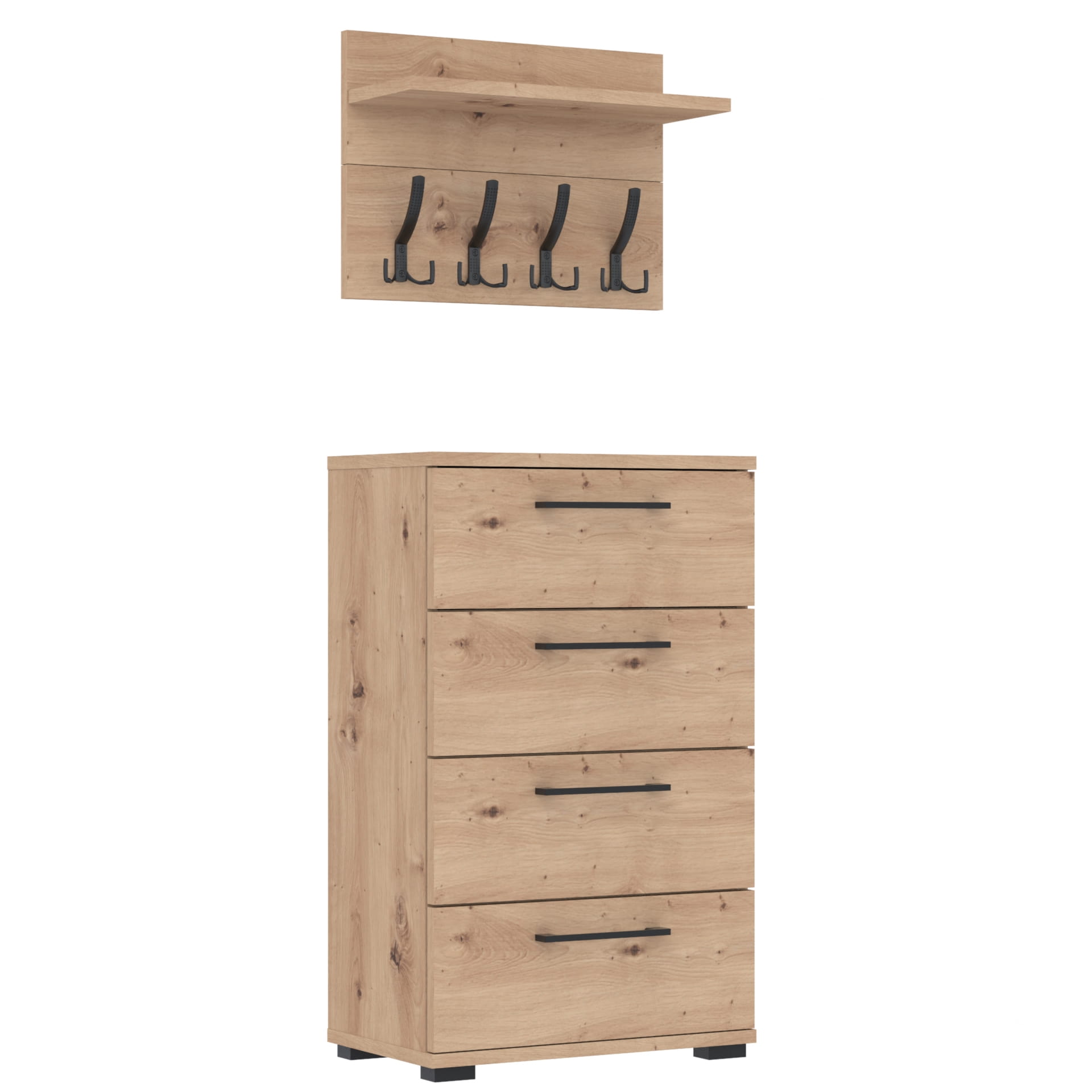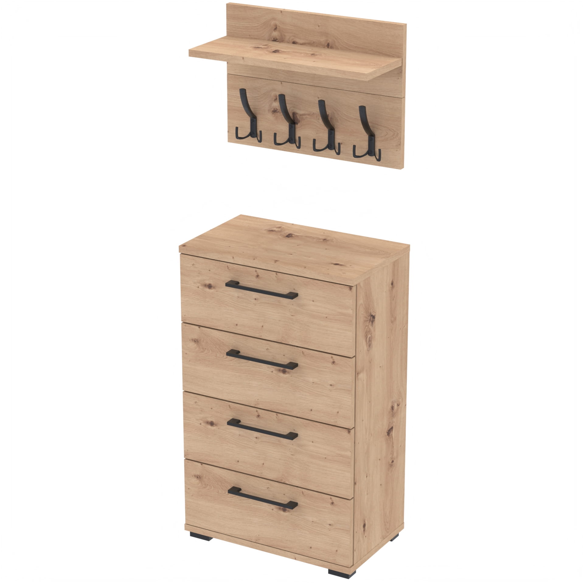 Zestaw Mebli - Komoda ALTUS z 4 Szafkami plus Wieszak ścienny
