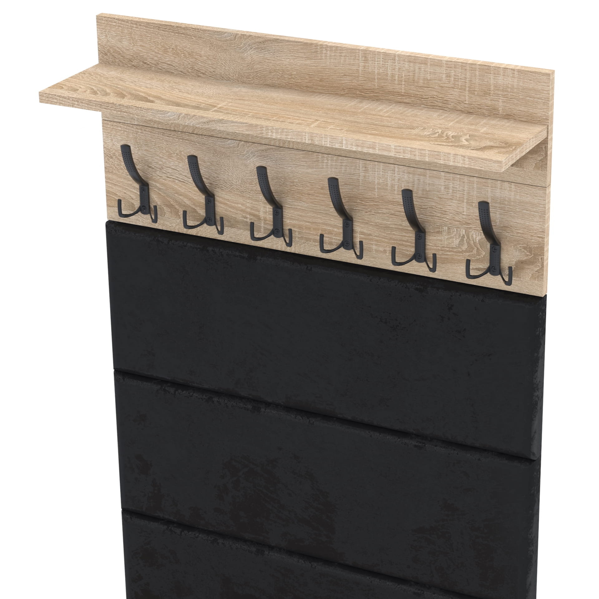 Wieszak z półką mocuje się do ściany za pomocą kołków rozporowych zawartych w zestawie.Wieszak i półka są oddzielnymi płytami, przykręca się je do ściany oddzielnie.