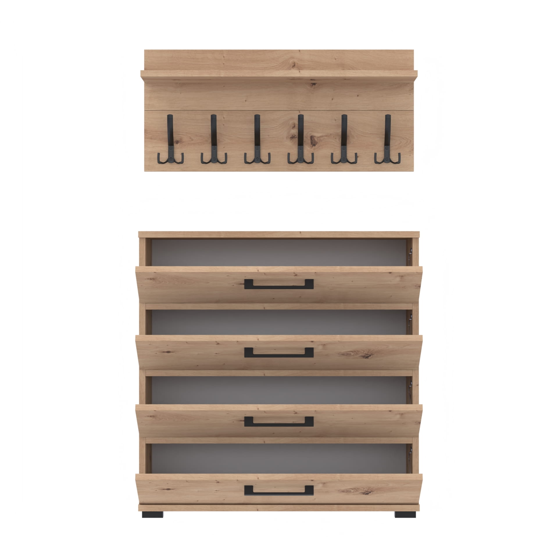 Zestaw Mebli - Komoda ALTUS z 4 Szafkami plus Wieszak ścienny