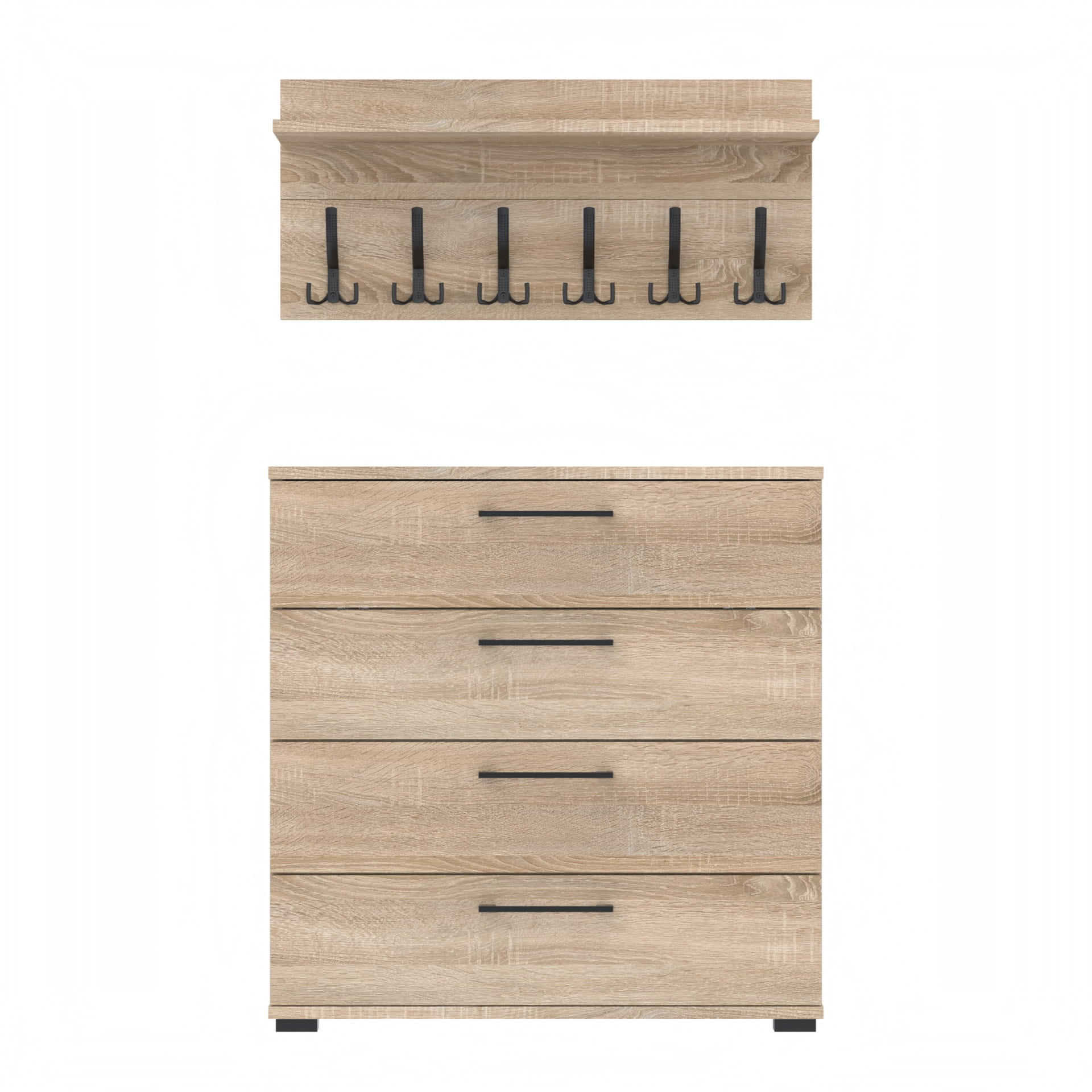 Zestaw Mebli - Komoda ALTUS z 4 Szafkami plus Wieszak ścienny