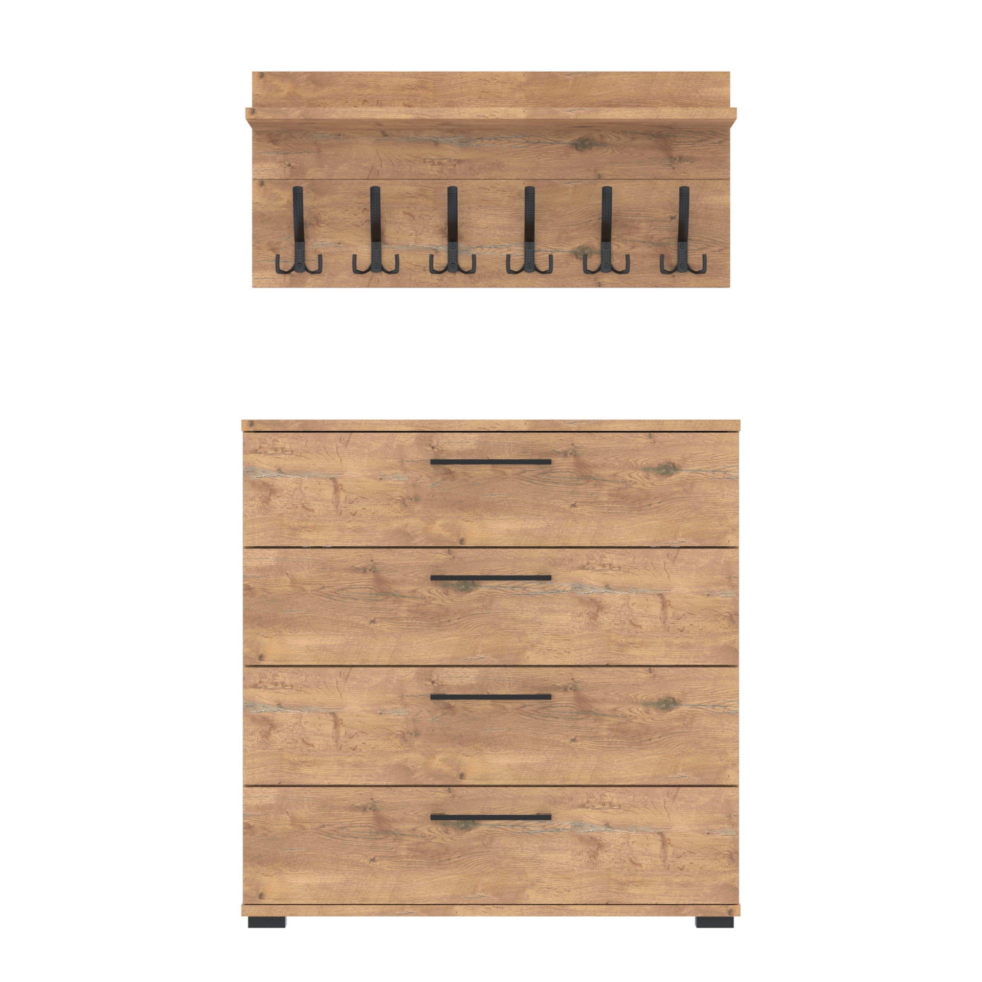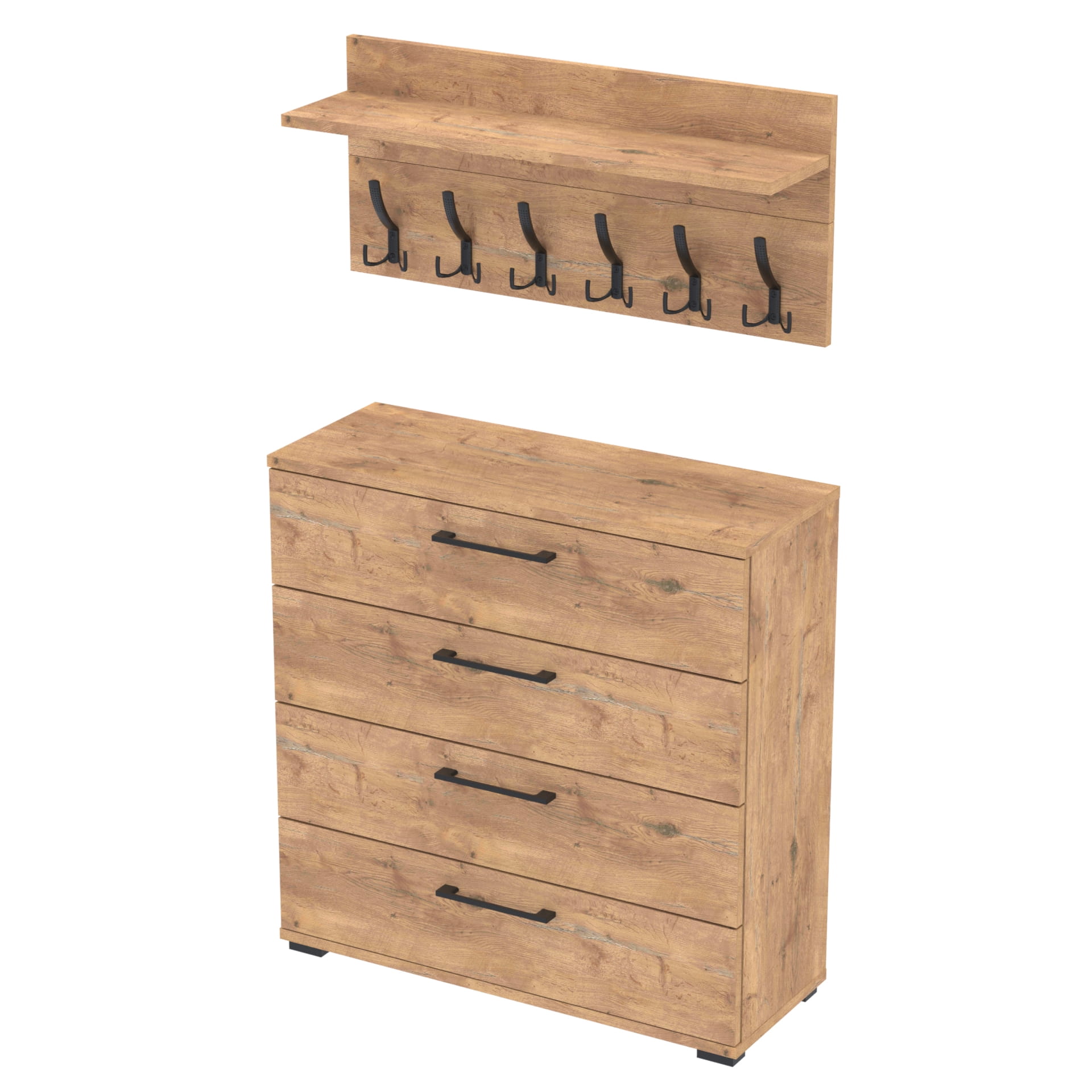 Zestaw Mebli - Komoda ALTUS z 4 Szafkami plus Wieszak ścienny