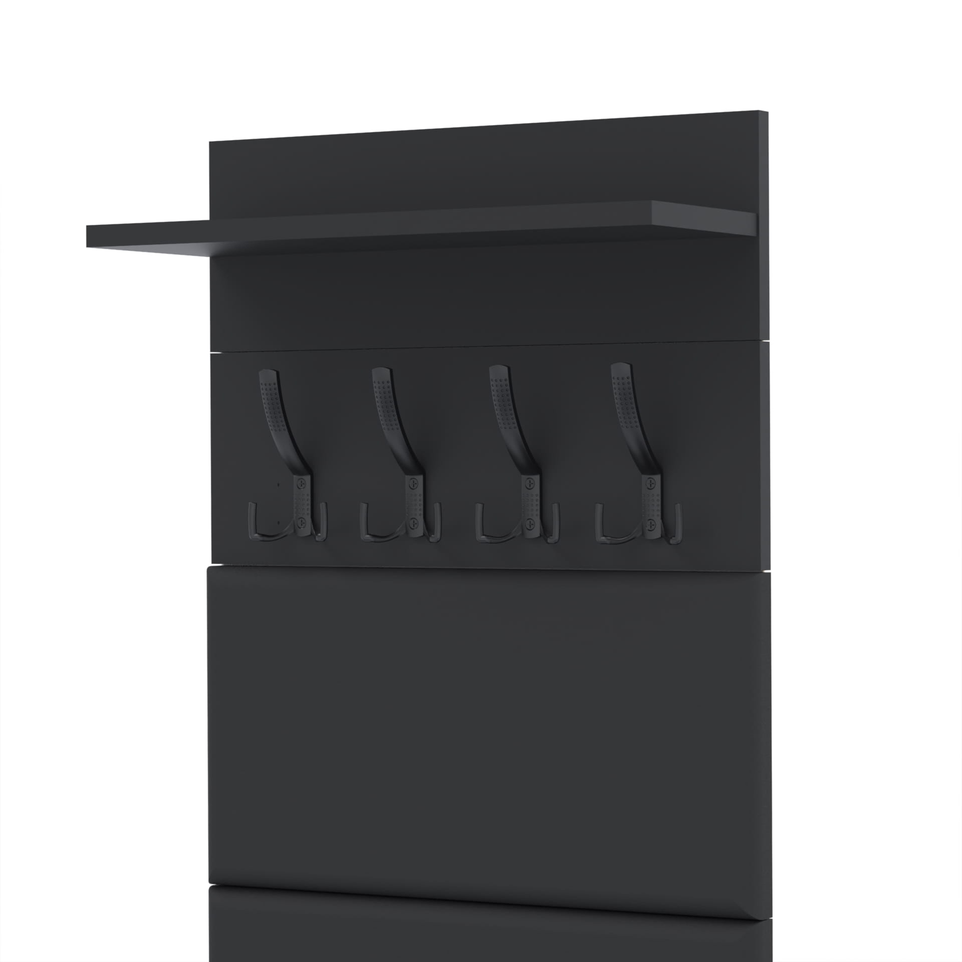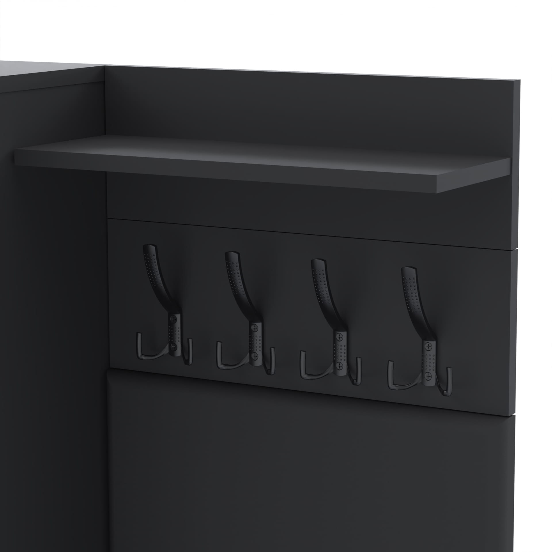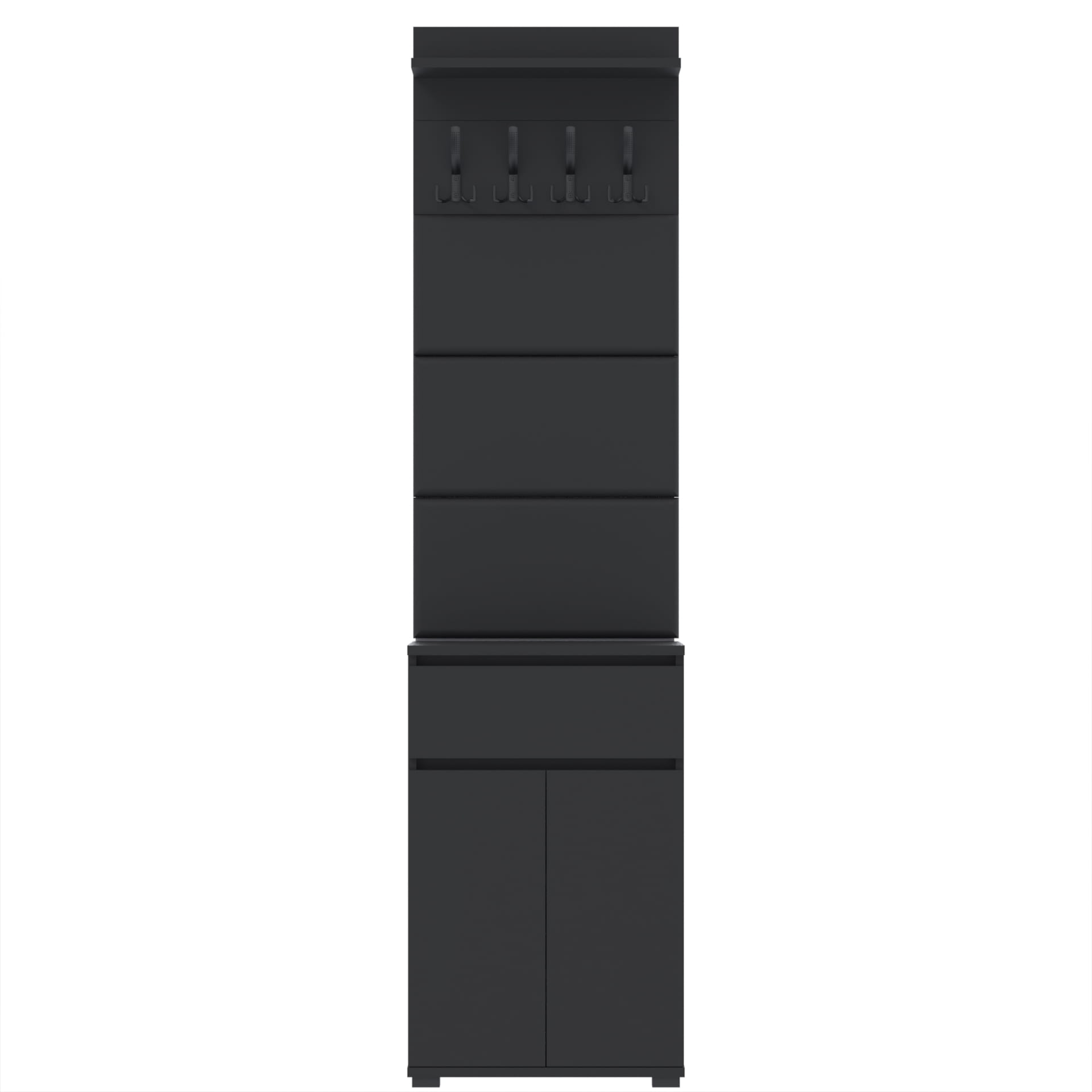 Zestaw składa się z różnorodnych elementów - komody TRES z szufladą i 3 półkami na buty, paneli ściennych oraz wieszaka. Te elementy razem tworzą harmonijną całość, ale mogą być również ustawiane w dowolnej konfiguracji, zgodnie z indywidualnymi potrzebami i preferencjami.