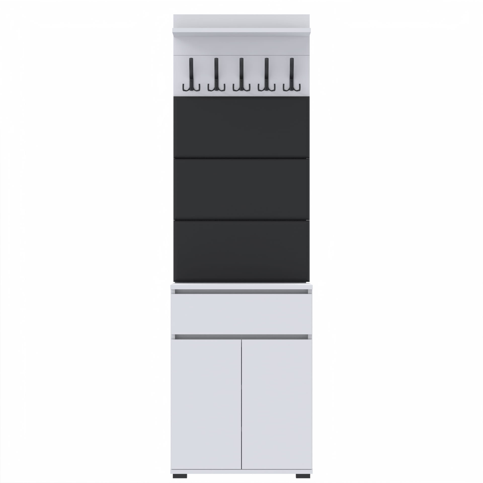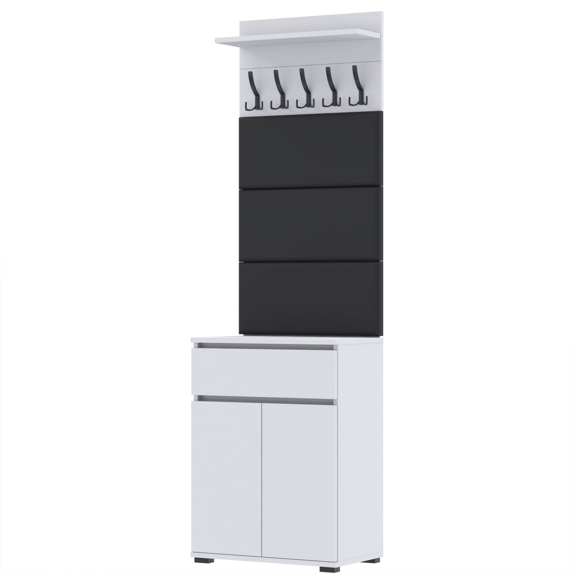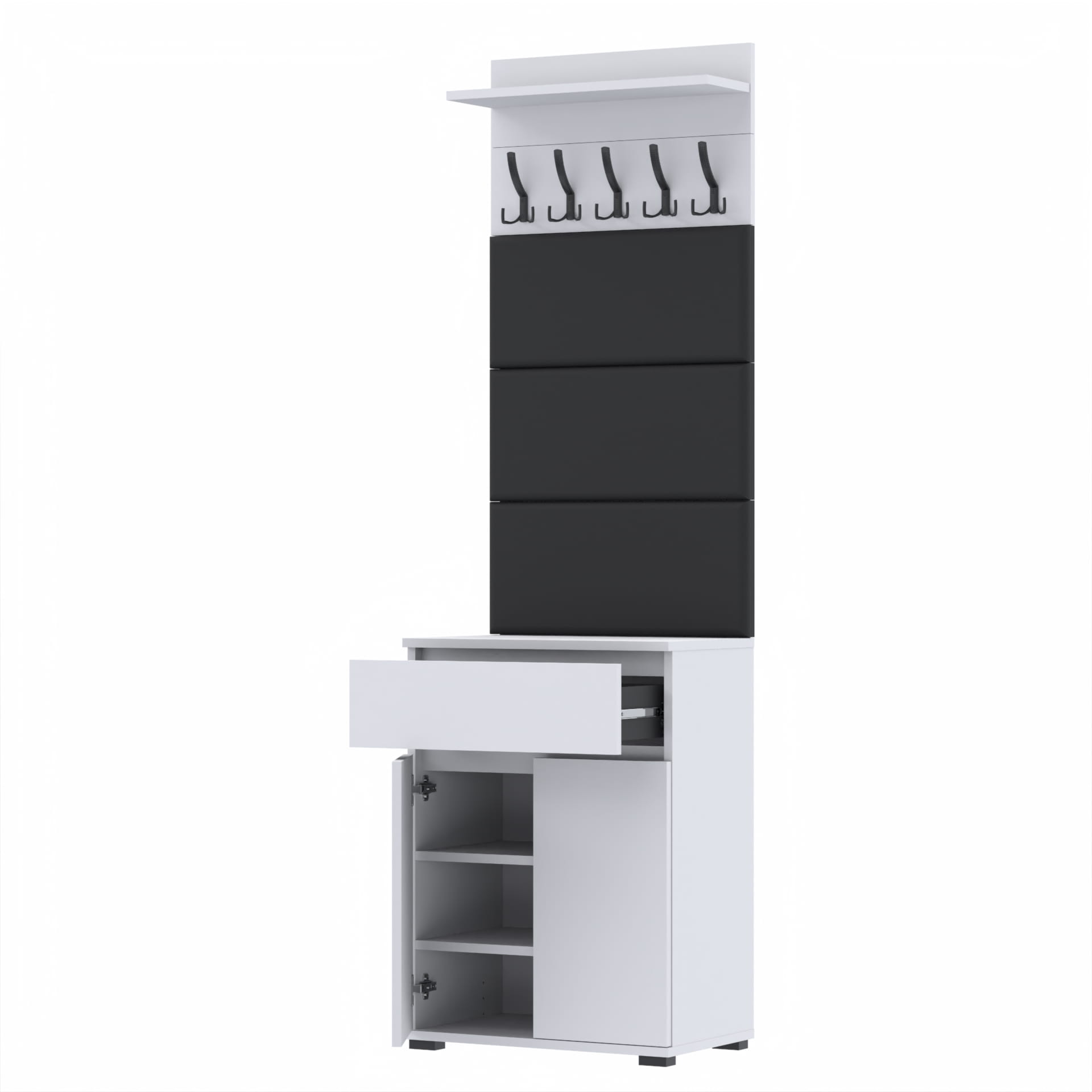 Solidna szafka z szufladą i 3 półkami na buty, wieszak z metalowymi hakami, półka