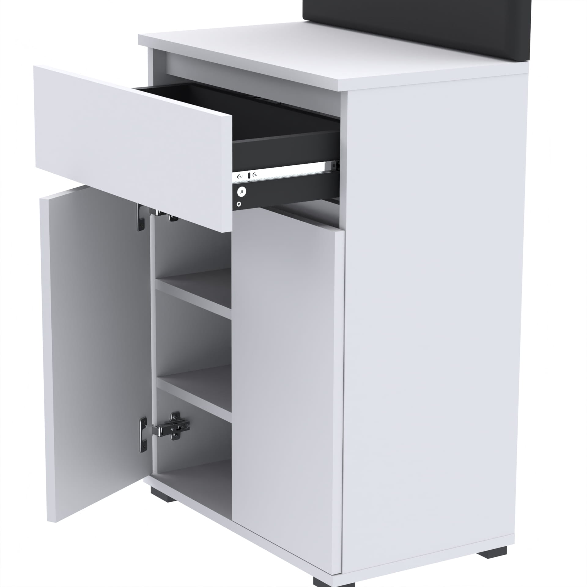 Szafka na buty zawiera trzy poziomy z regulowanymi półkami.