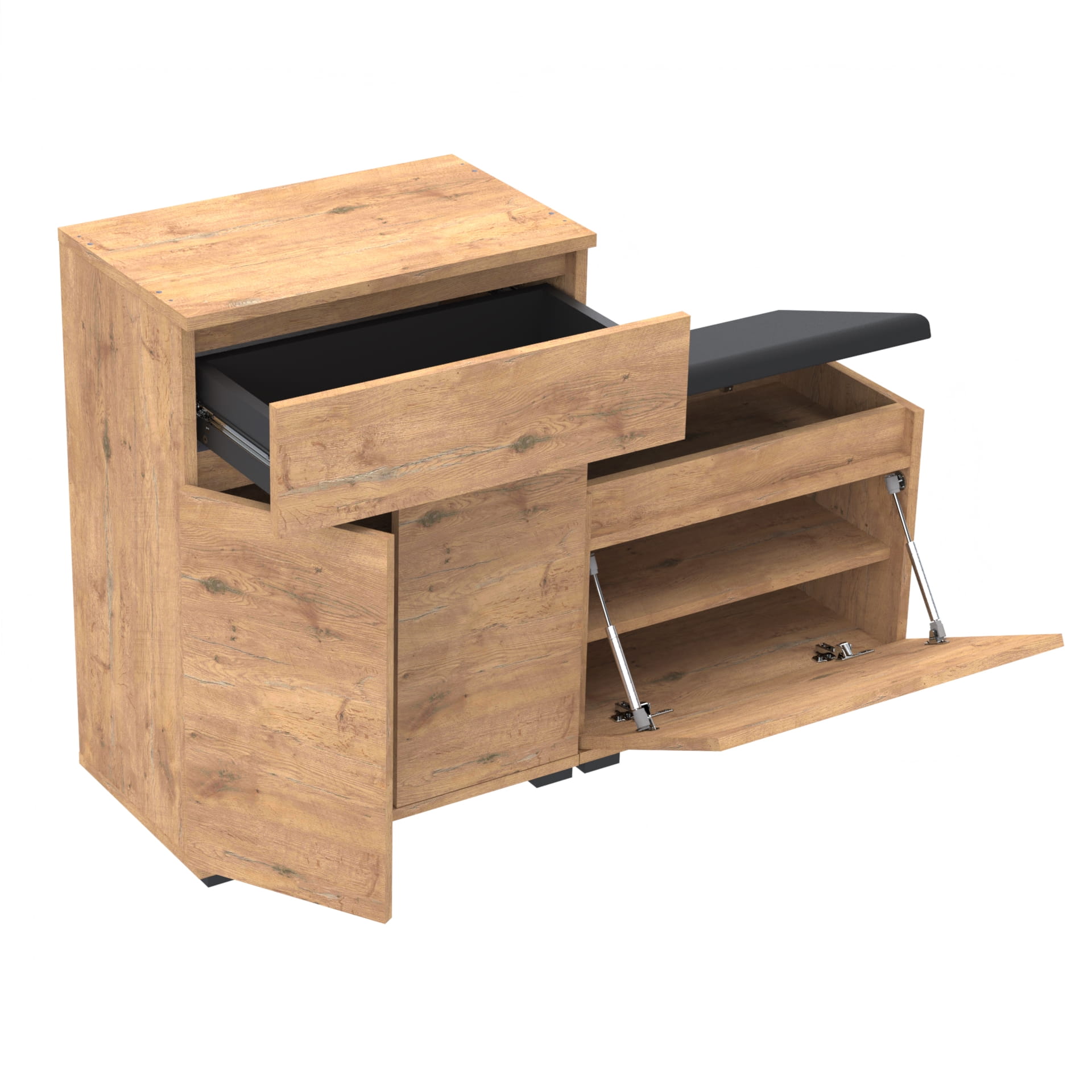 Zestaw - szafka na buty z siedziskiem tapicerowanym i schowkiem, szafka z szufladą Tres