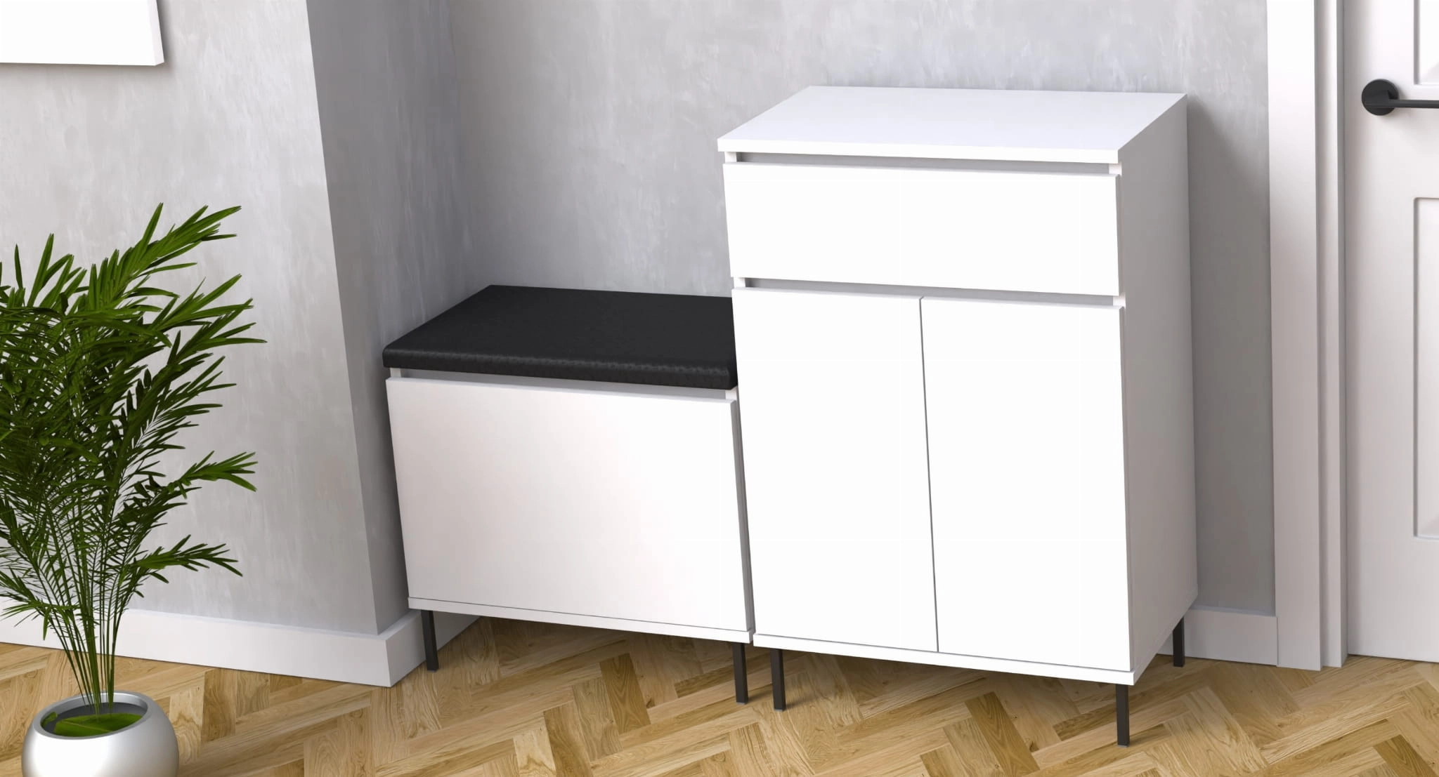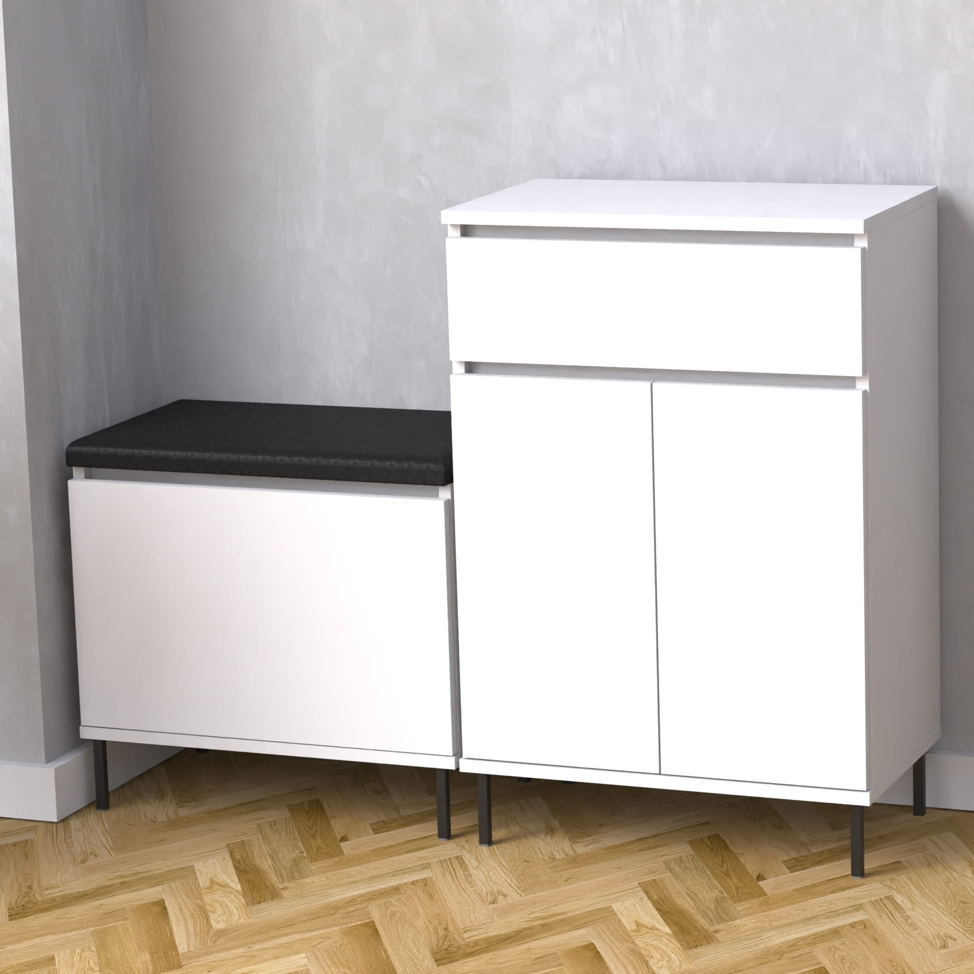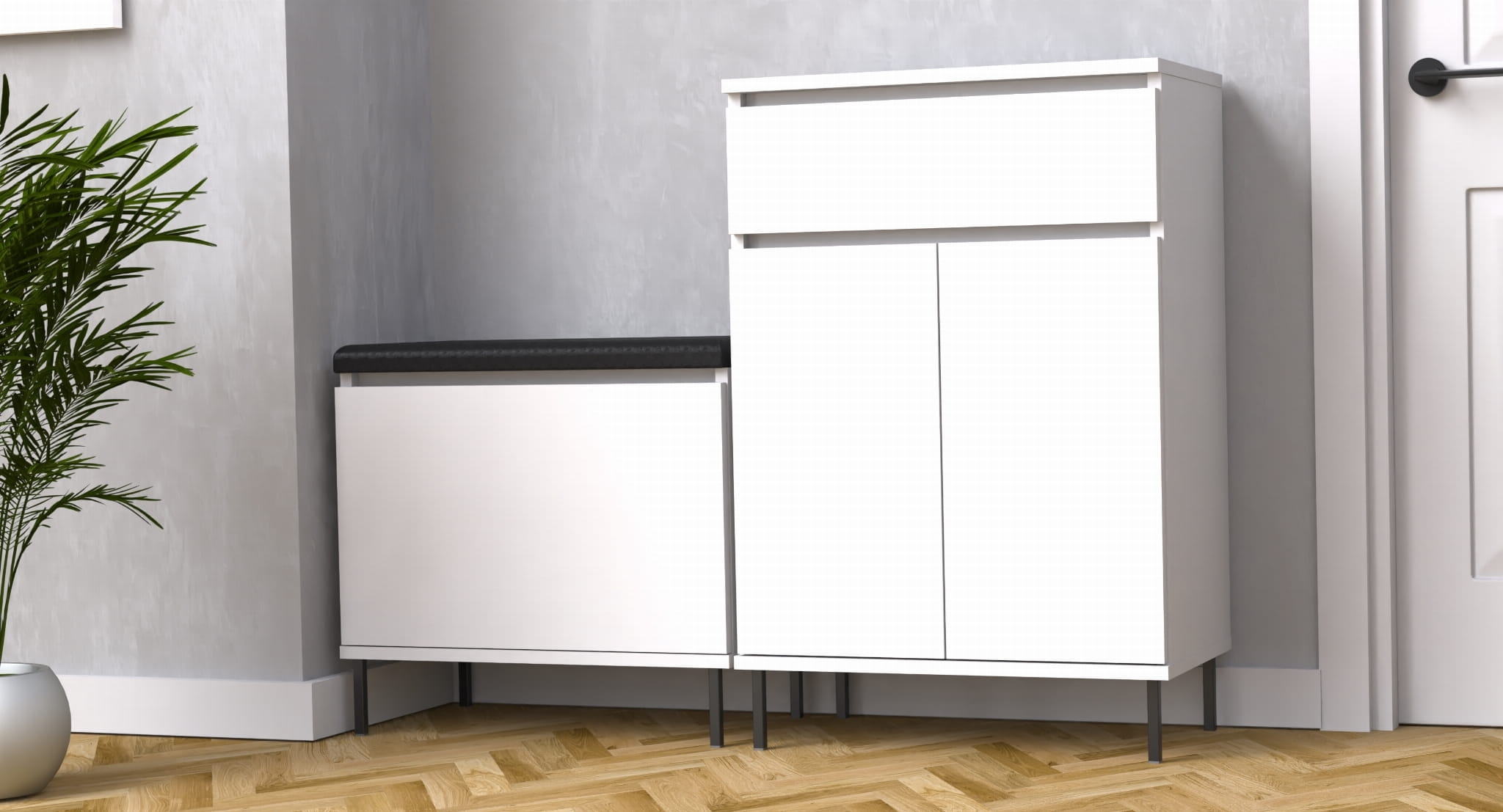 Zestaw - szafka na buty z siedziskiem tapicerowanym i schowkiem, szafka z szufladą Tres