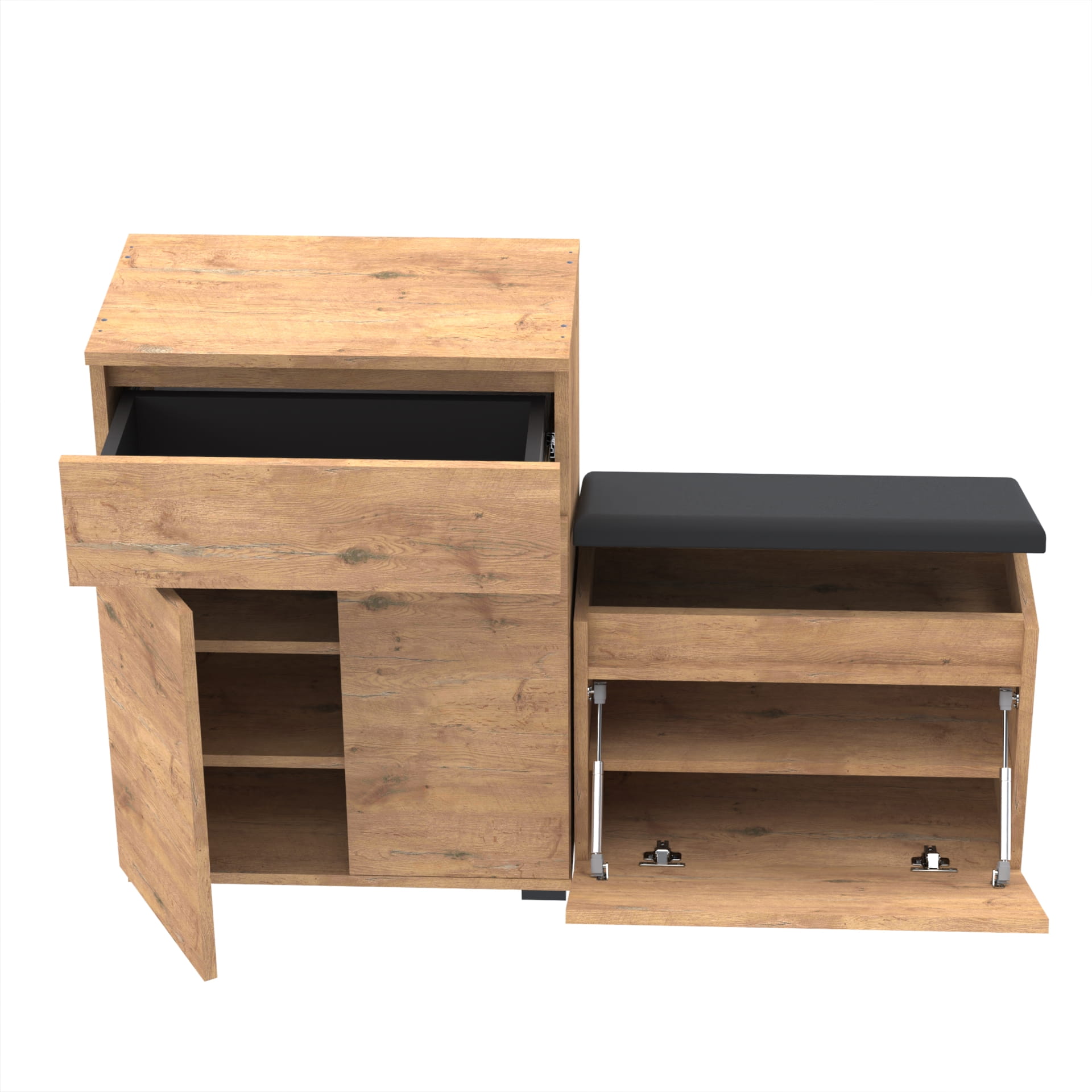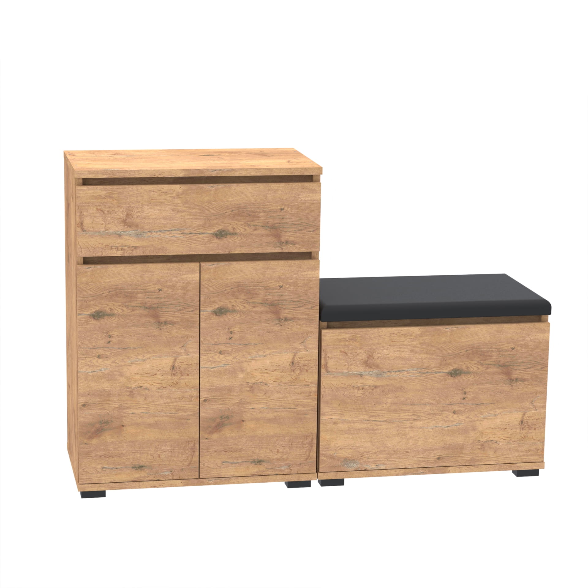 Zestaw - szafka na buty z siedziskiem tapicerowanym i schowkiem, szafka z szufladą Tres