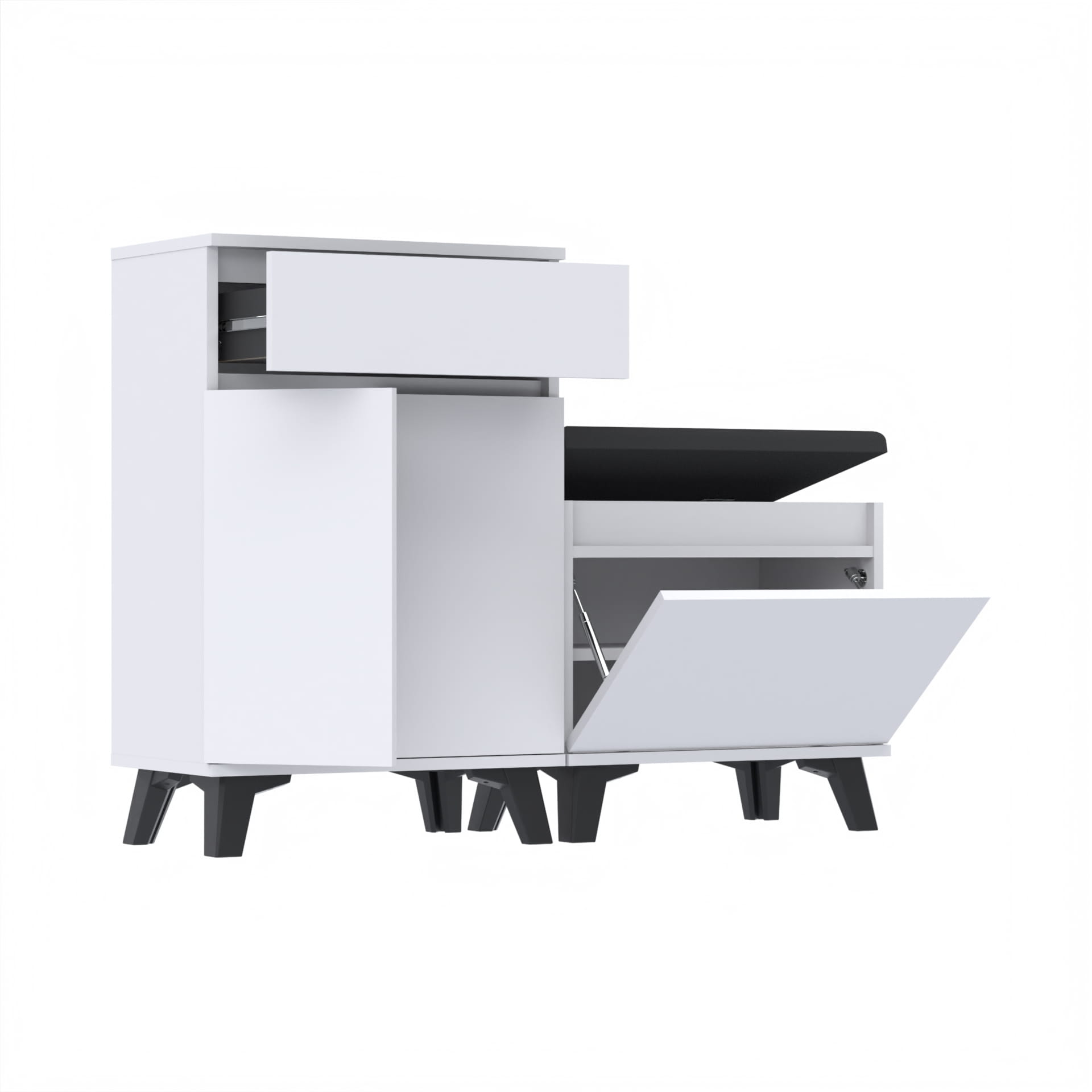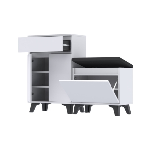 Zestaw - szafka na buty z siedziskiem tapicerowanym i schowkiem, szafka z szufladą Tres