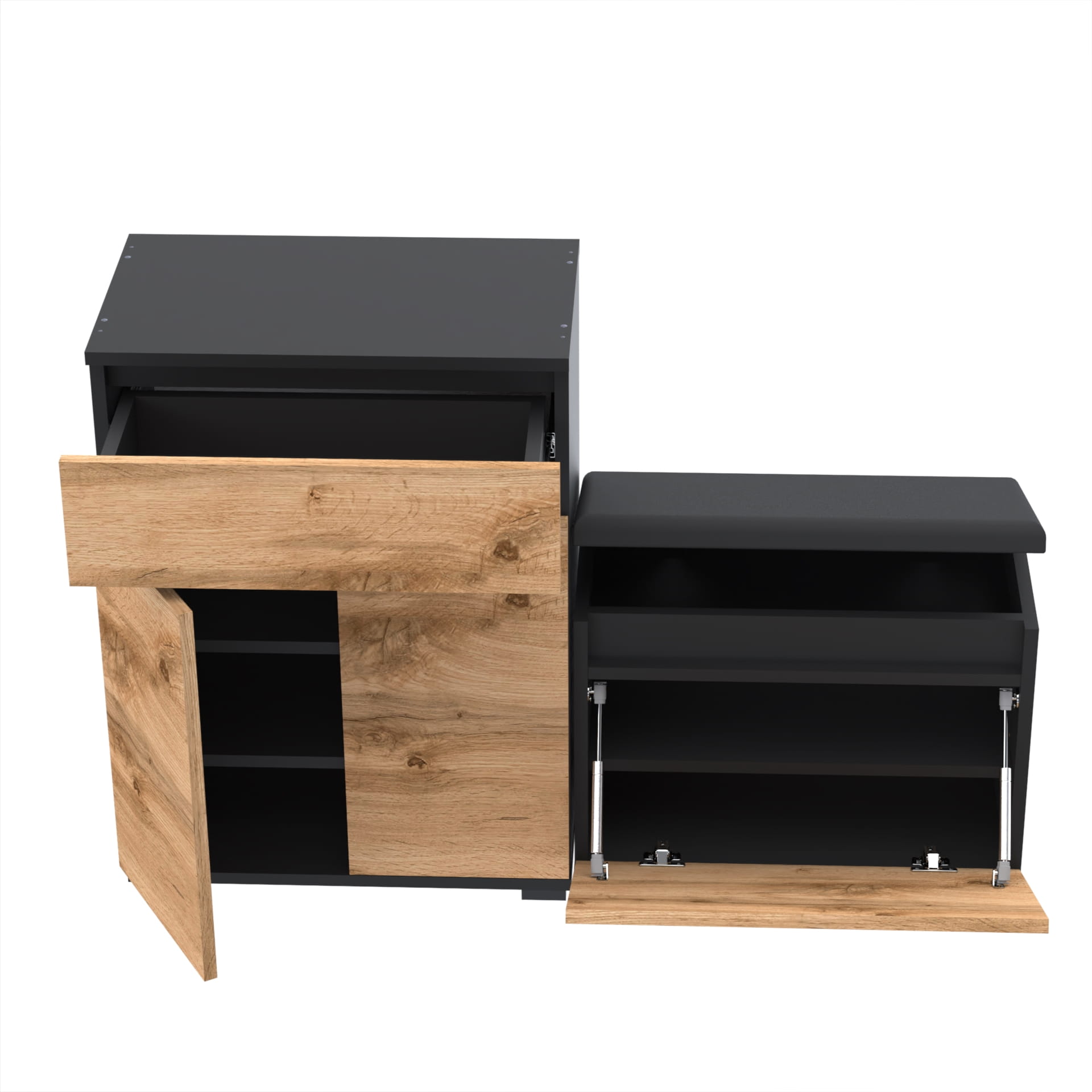 Zestaw - szafka na buty z siedziskiem tapicerowanym i schowkiem, szafka z szufladą Tres