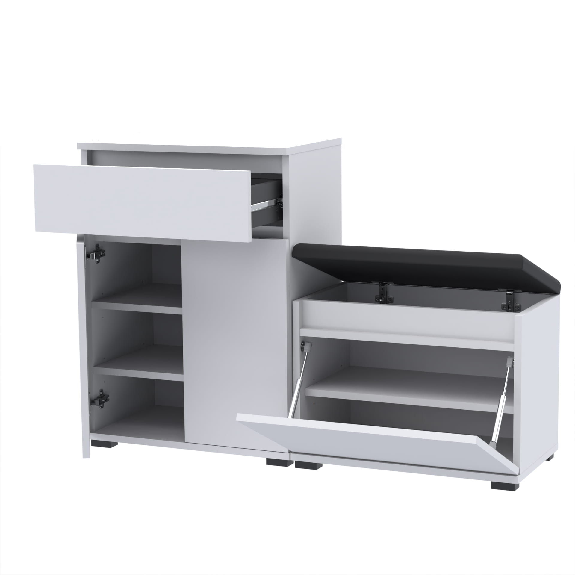 Zestaw - szafka na buty z siedziskiem tapicerowanym i schowkiem, szafka z szufladą Tres