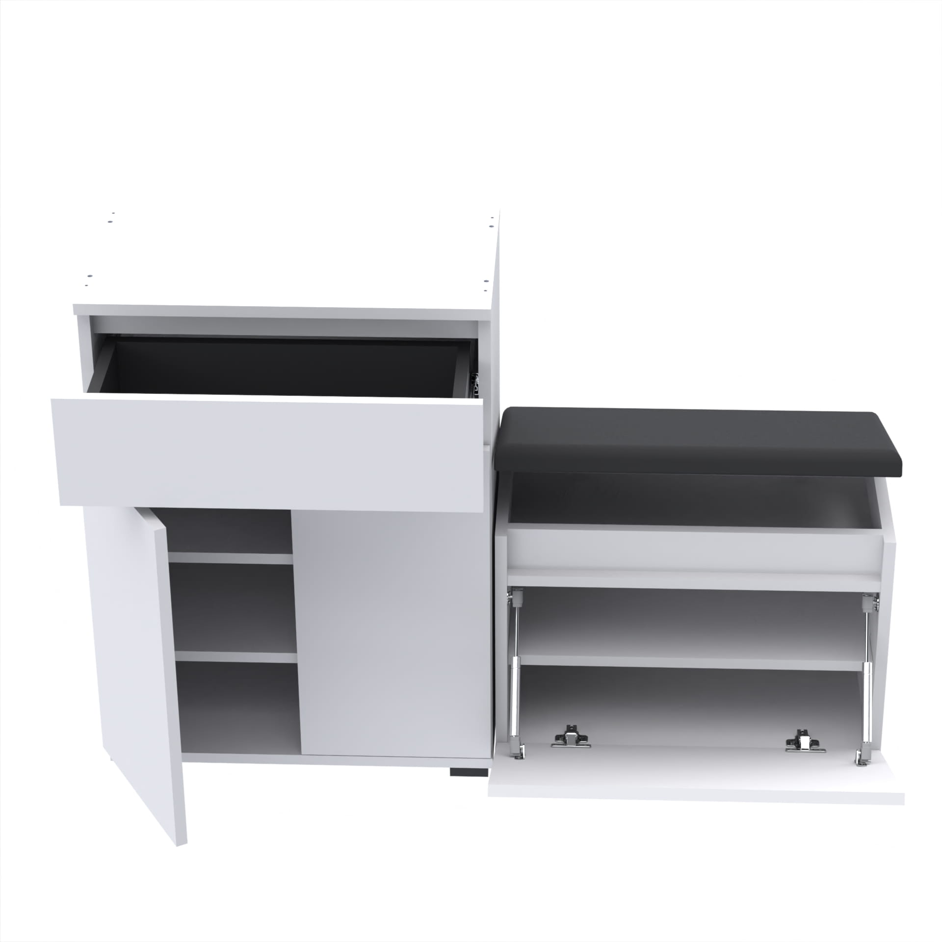 Zestaw - szafka na buty z siedziskiem tapicerowanym i schowkiem VB oraz szafka z szufladą Tres