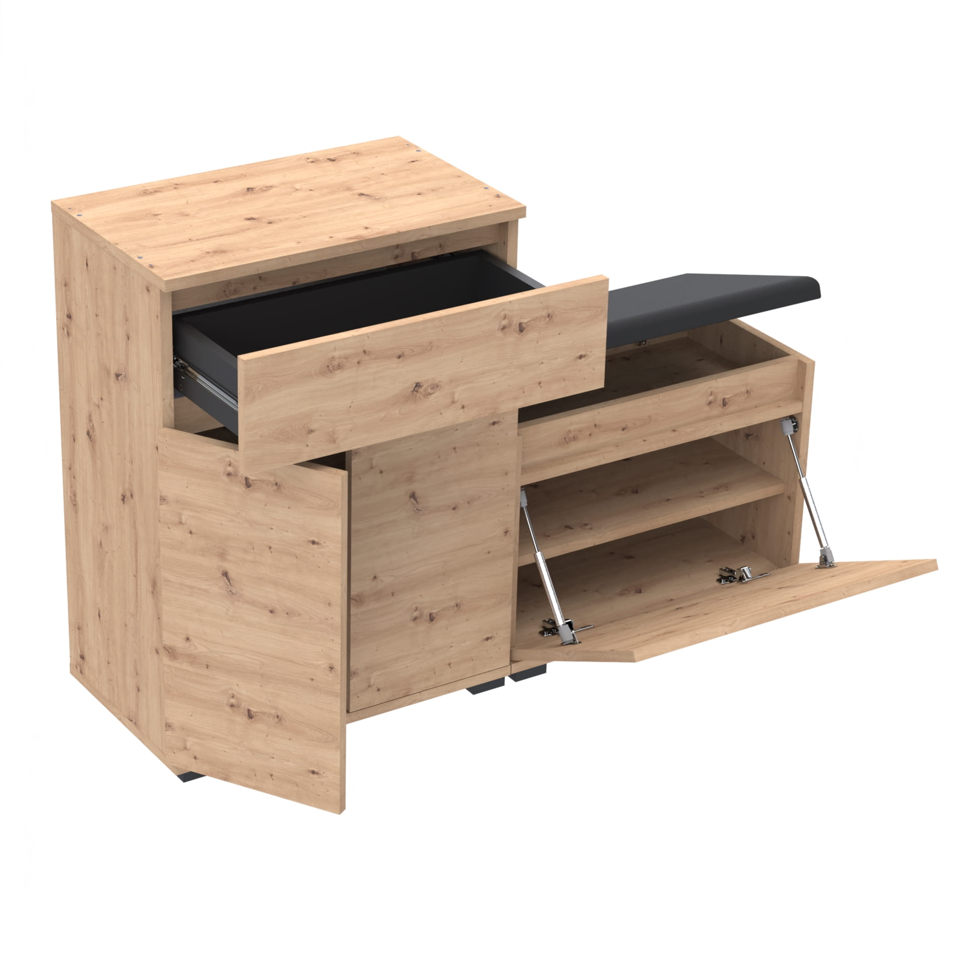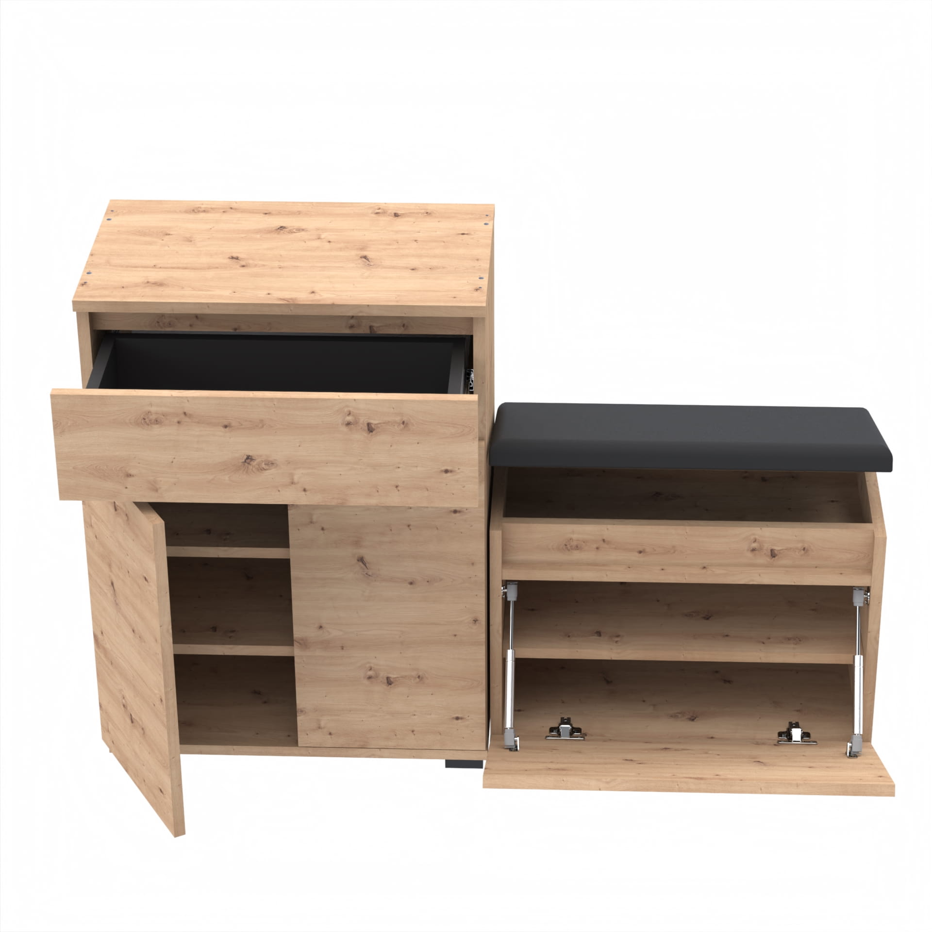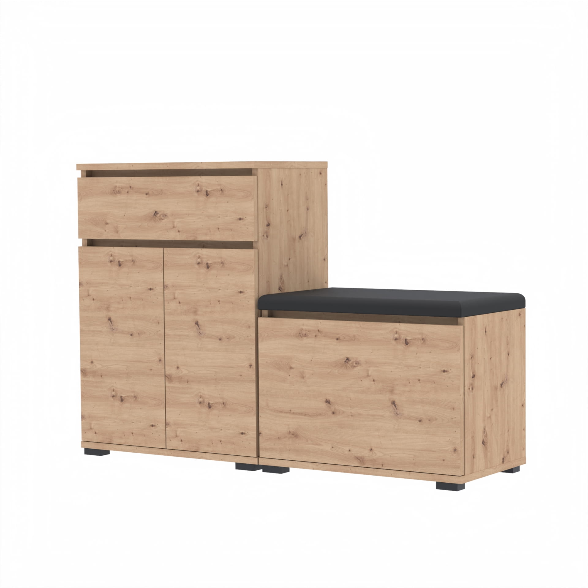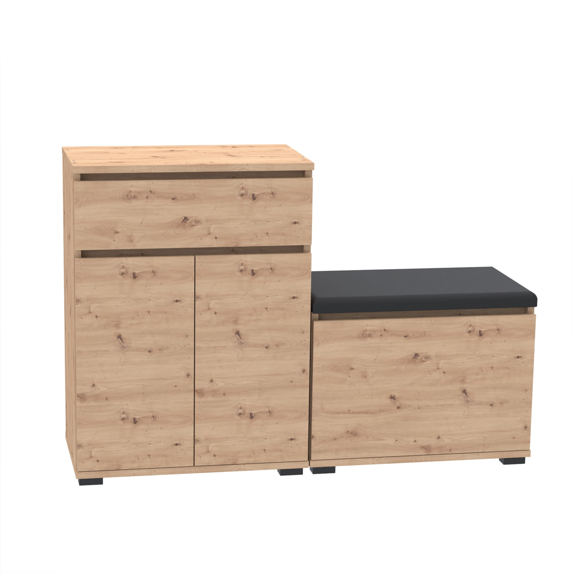 Zestaw - szafka na buty z siedziskiem tapicerowanym i schowkiem VB oraz szafka z szufladą Tres