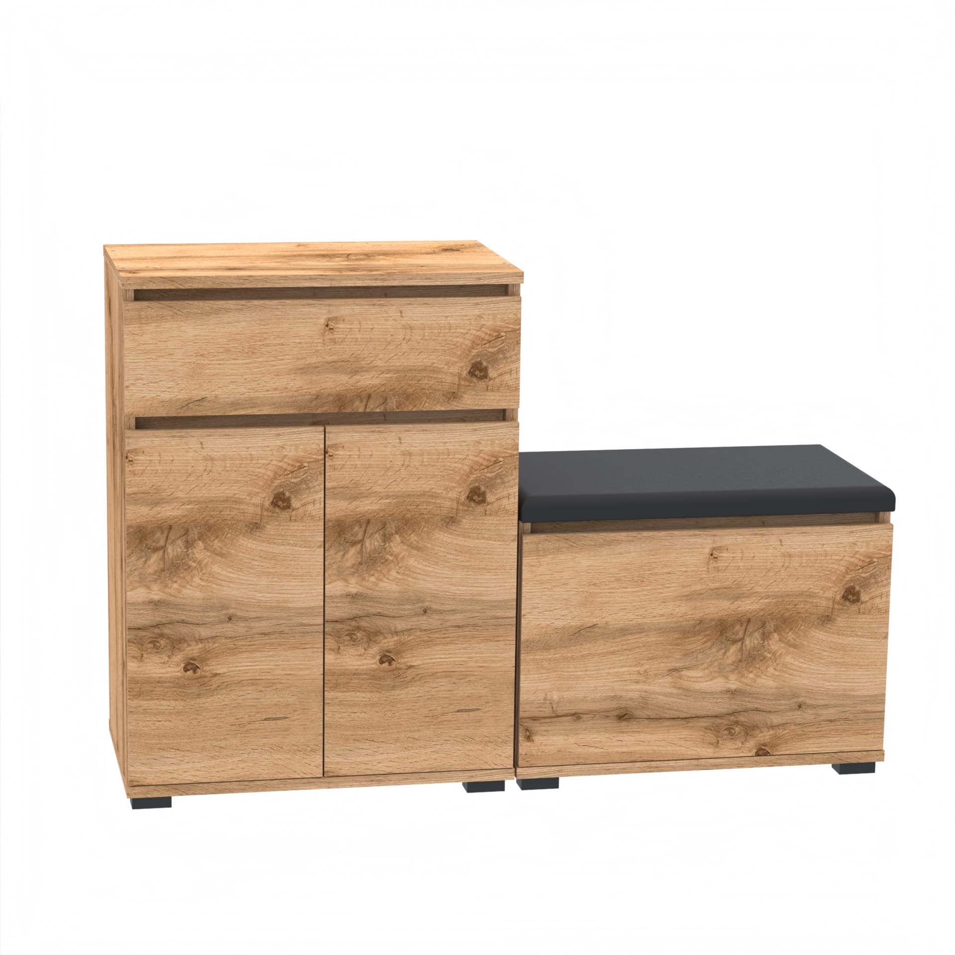 Zestaw - szafka na buty z siedziskiem tapicerowanym i schowkiem VB oraz szafka z szufladą Tres