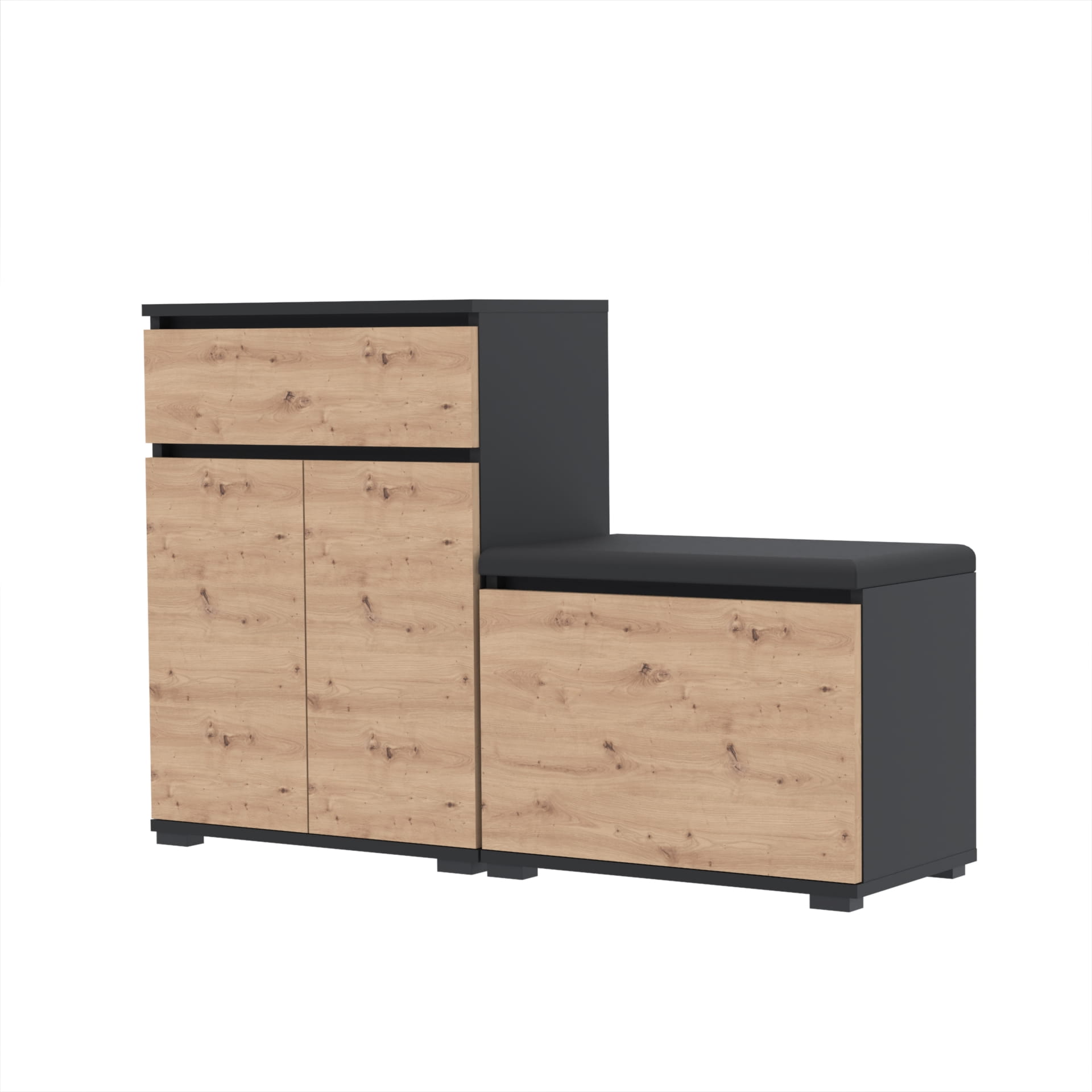 Zestaw - szafka na buty z siedziskiem tapicerowanym i schowkiem VB oraz szafka z szufladą Tres