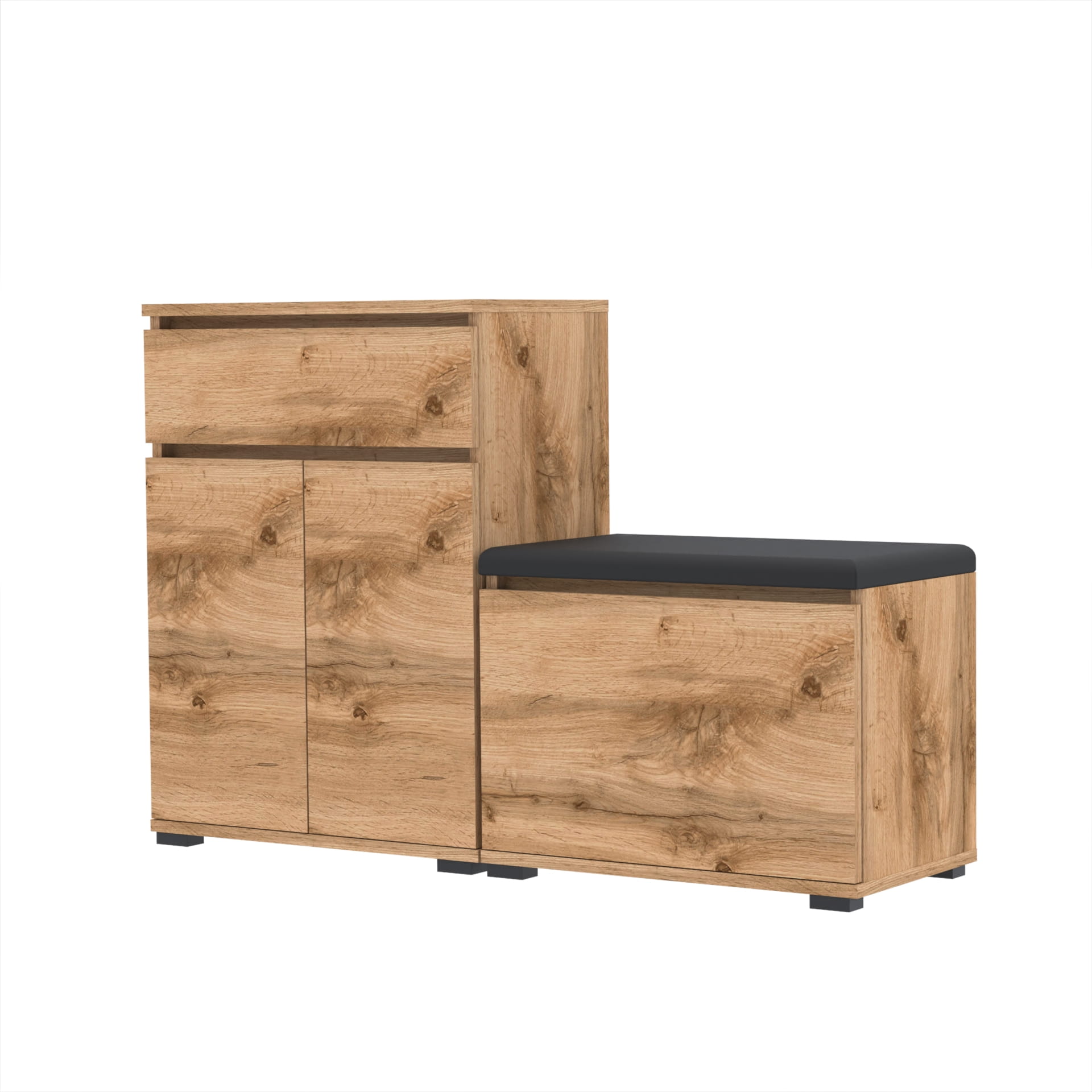 Zestaw - szafka na buty z siedziskiem tapicerowanym i schowkiem VB oraz szafka z szufladą Tres